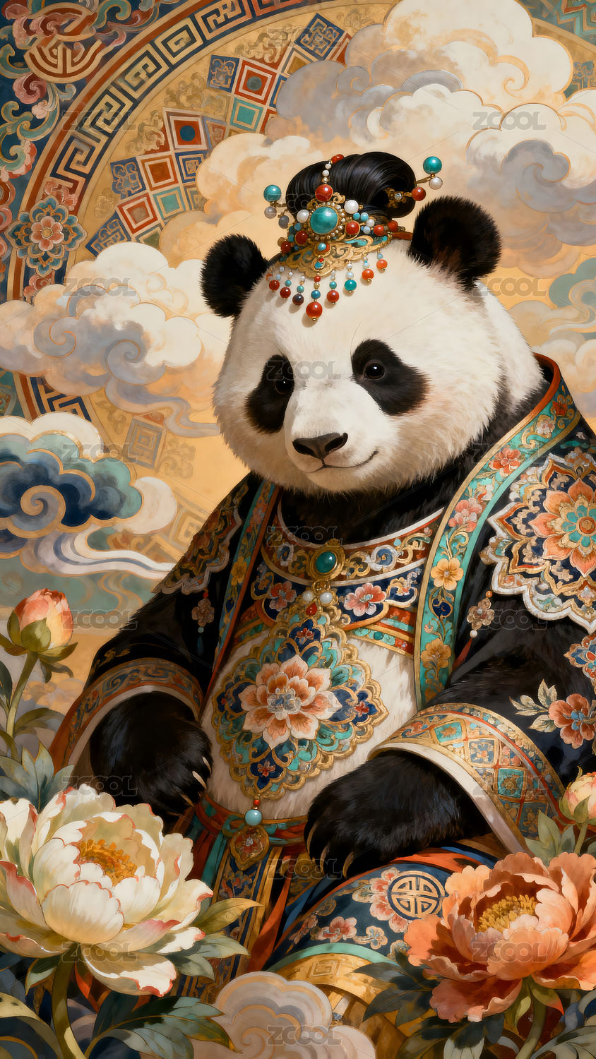 熊猫,元宝,金鱼,海浪,云朵,国潮