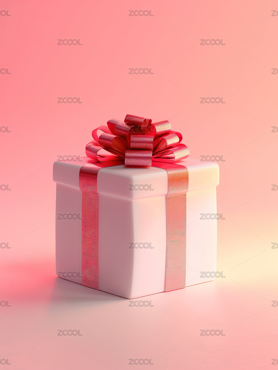 一个粉红色的礼盒上面一个粉红色的蝴蝶结高