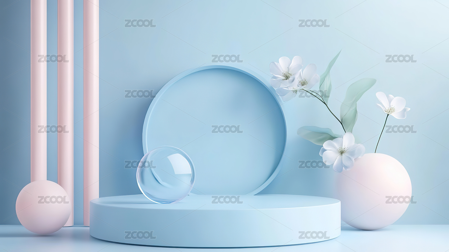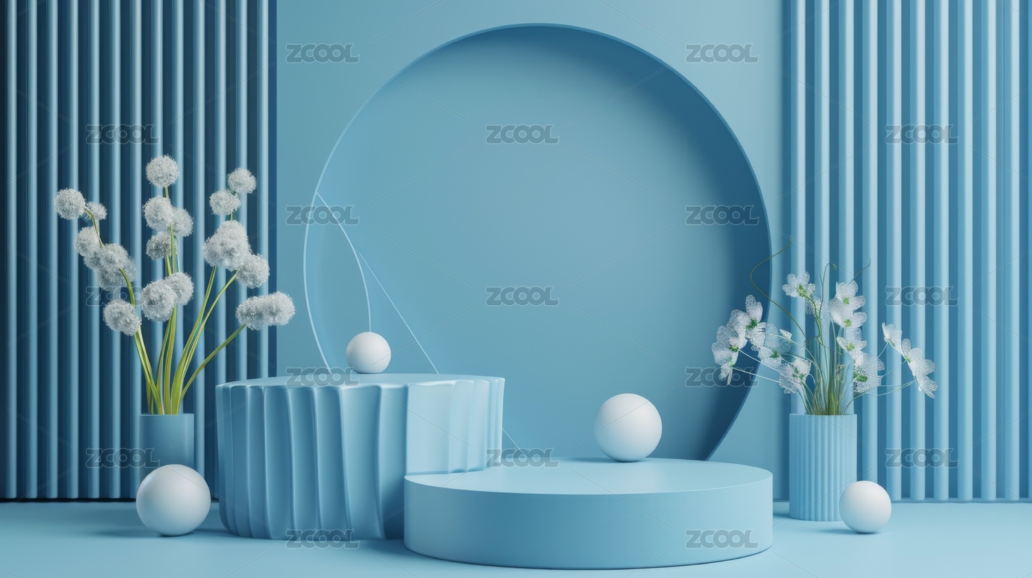 展示,蓝色,清新,建筑,质感,3d,展台,极简