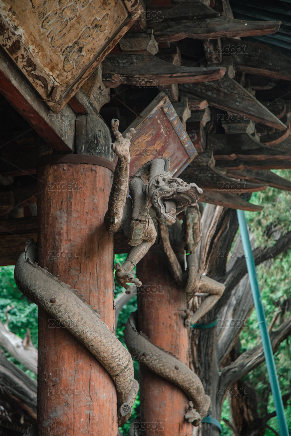 中国山西太原晋祠圣母殿廊前精美的木雕龙