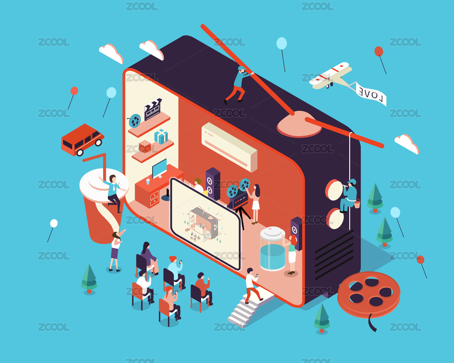 等距商务娱乐矢量插画