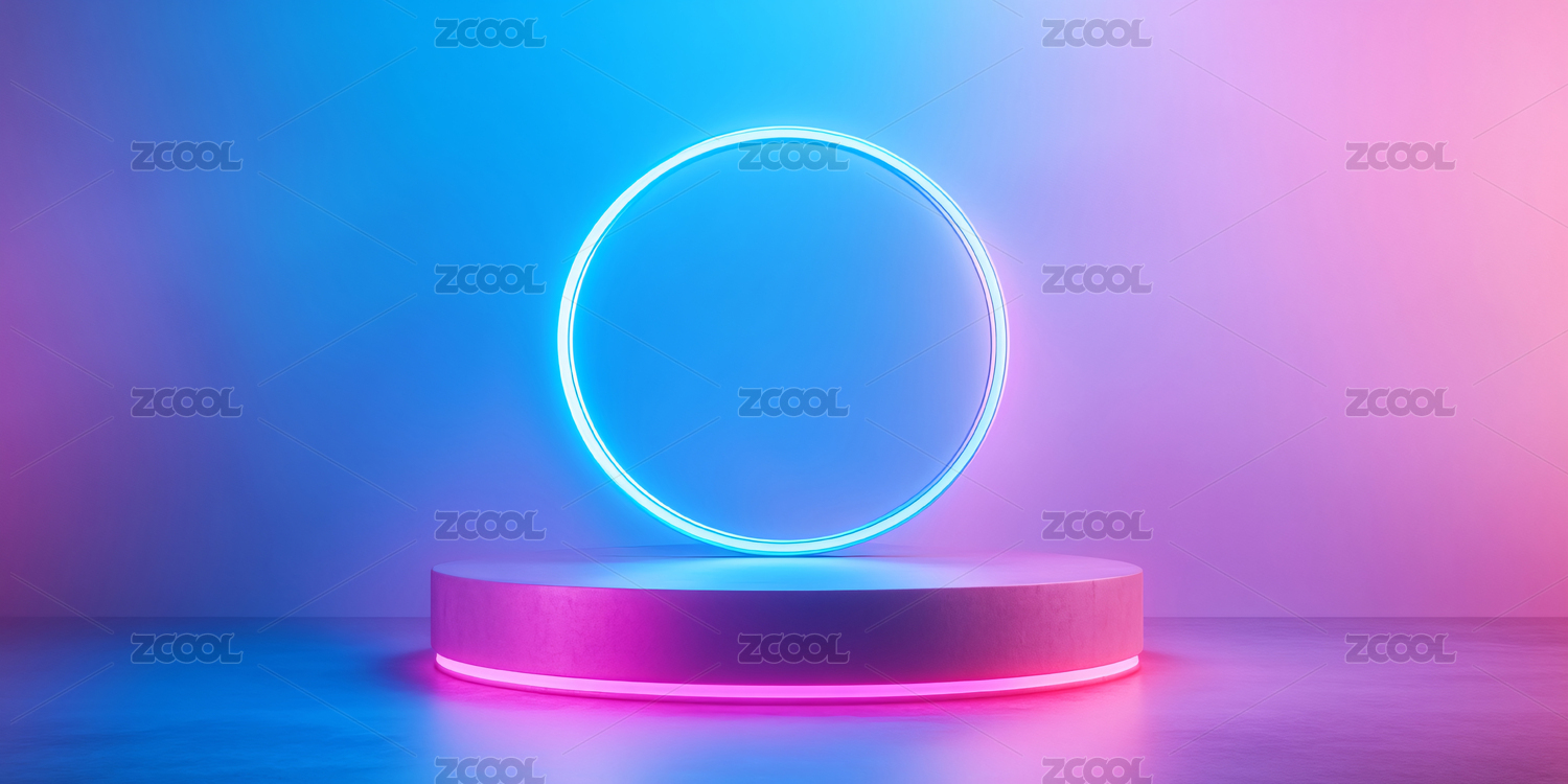 蓝粉渐变背景中的展示平台