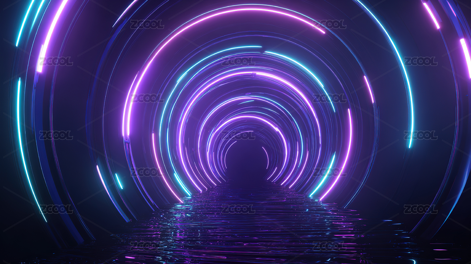 霓虹灯迷幻的空旷隧道