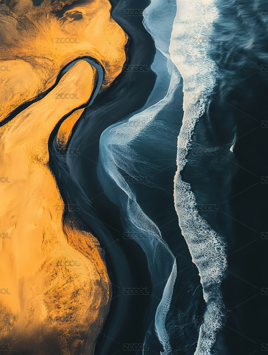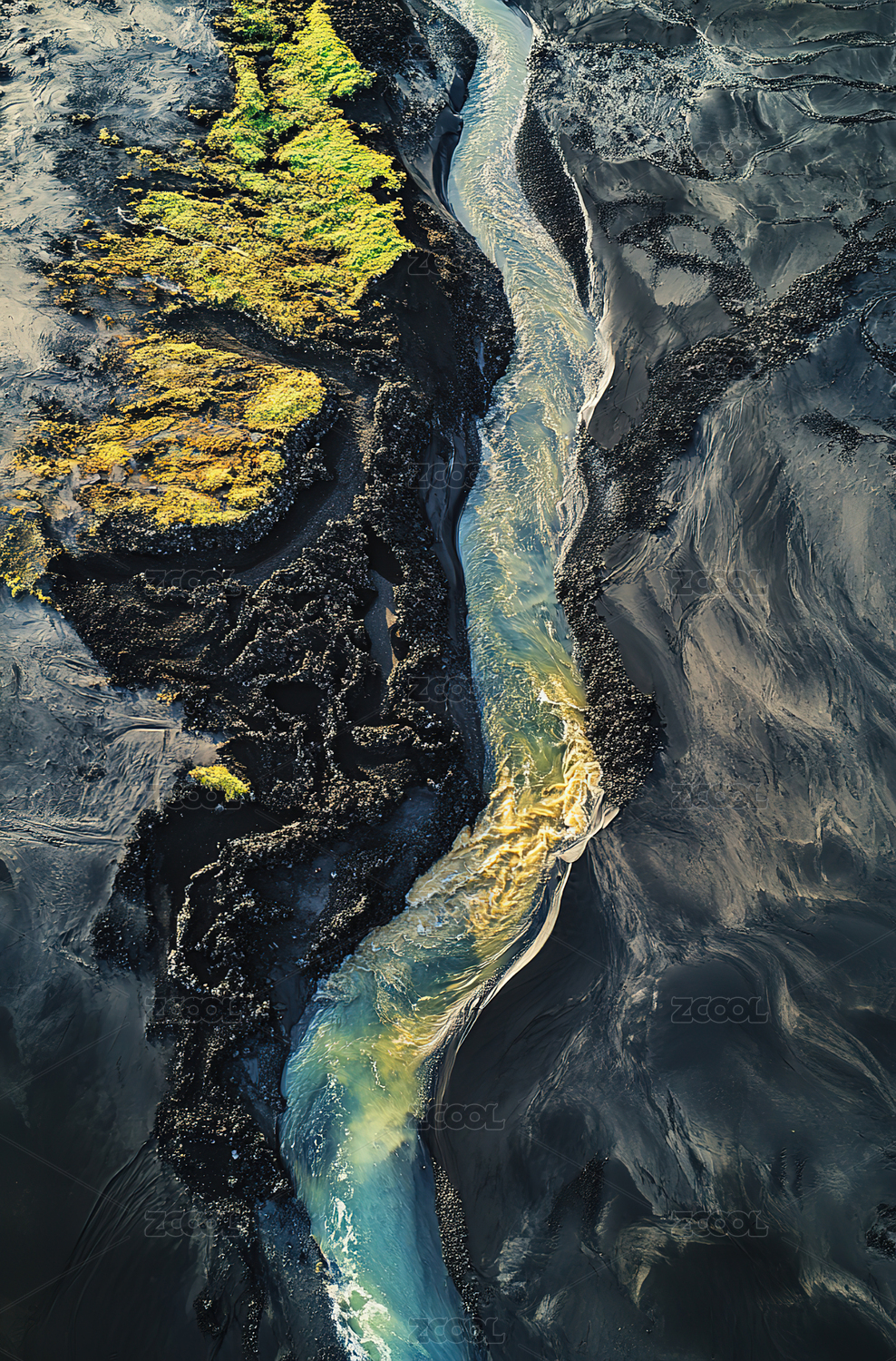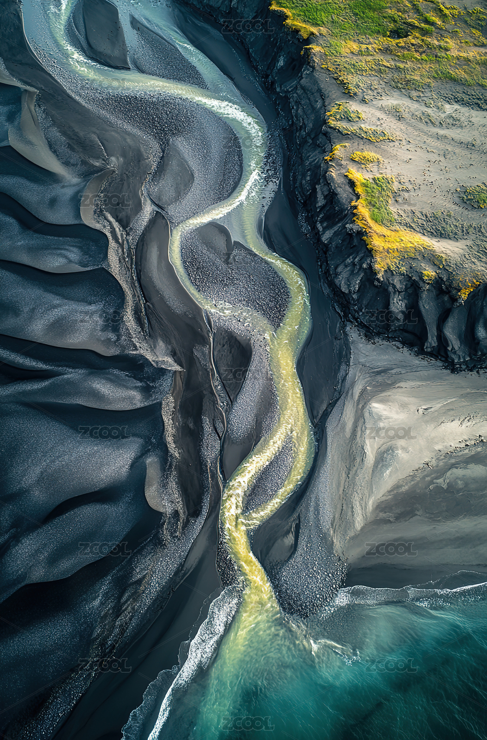 河流,冰岛,海边,航拍,线条,曲线,色彩,壮丽,入海口,自然