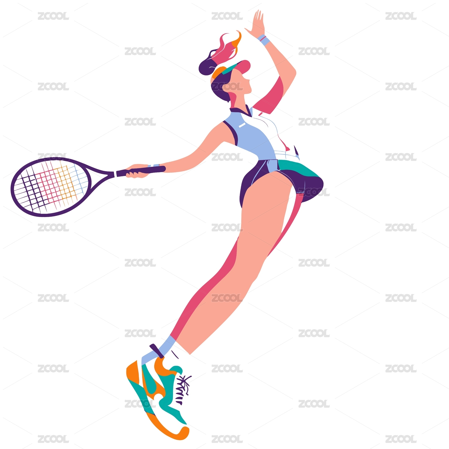 女孩,人物,运动,短裙,粉色,绿色,紫色,马尾,动态,球拍