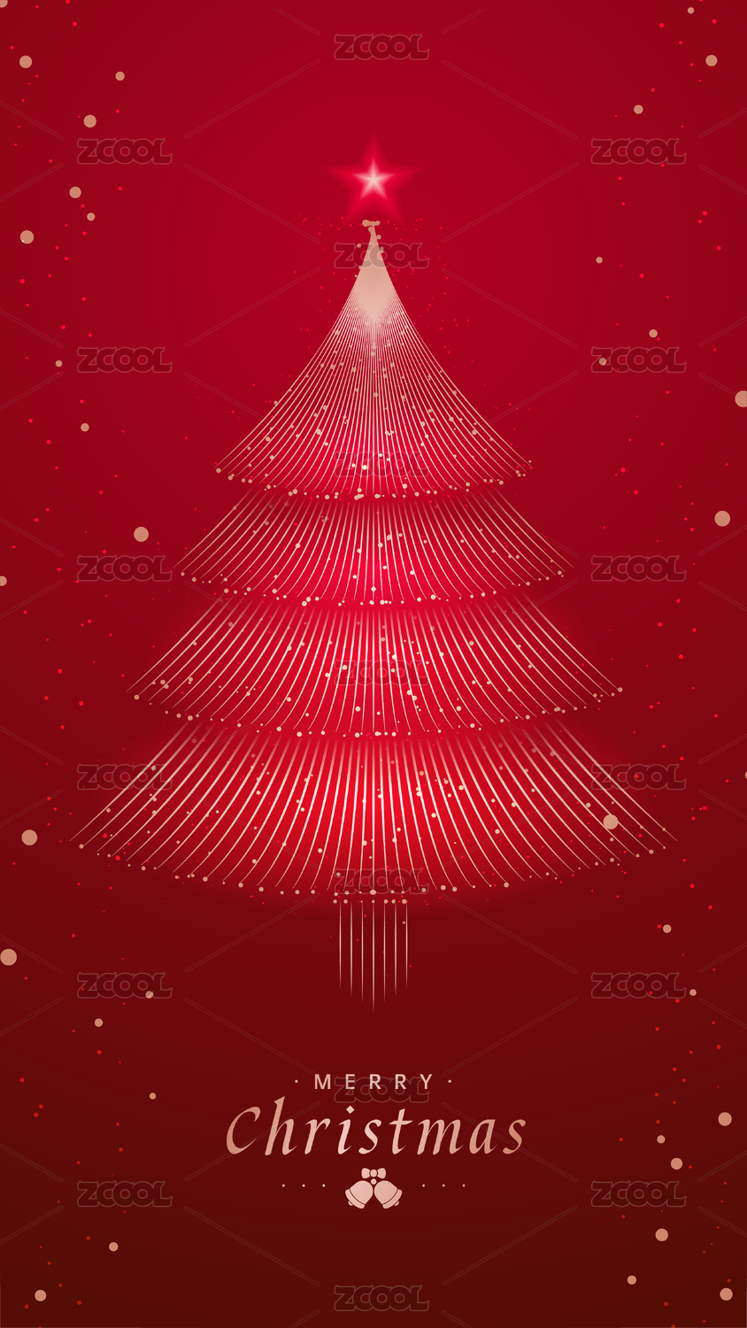 圣诞快乐下雪五角星圆球树红色喜庆背景