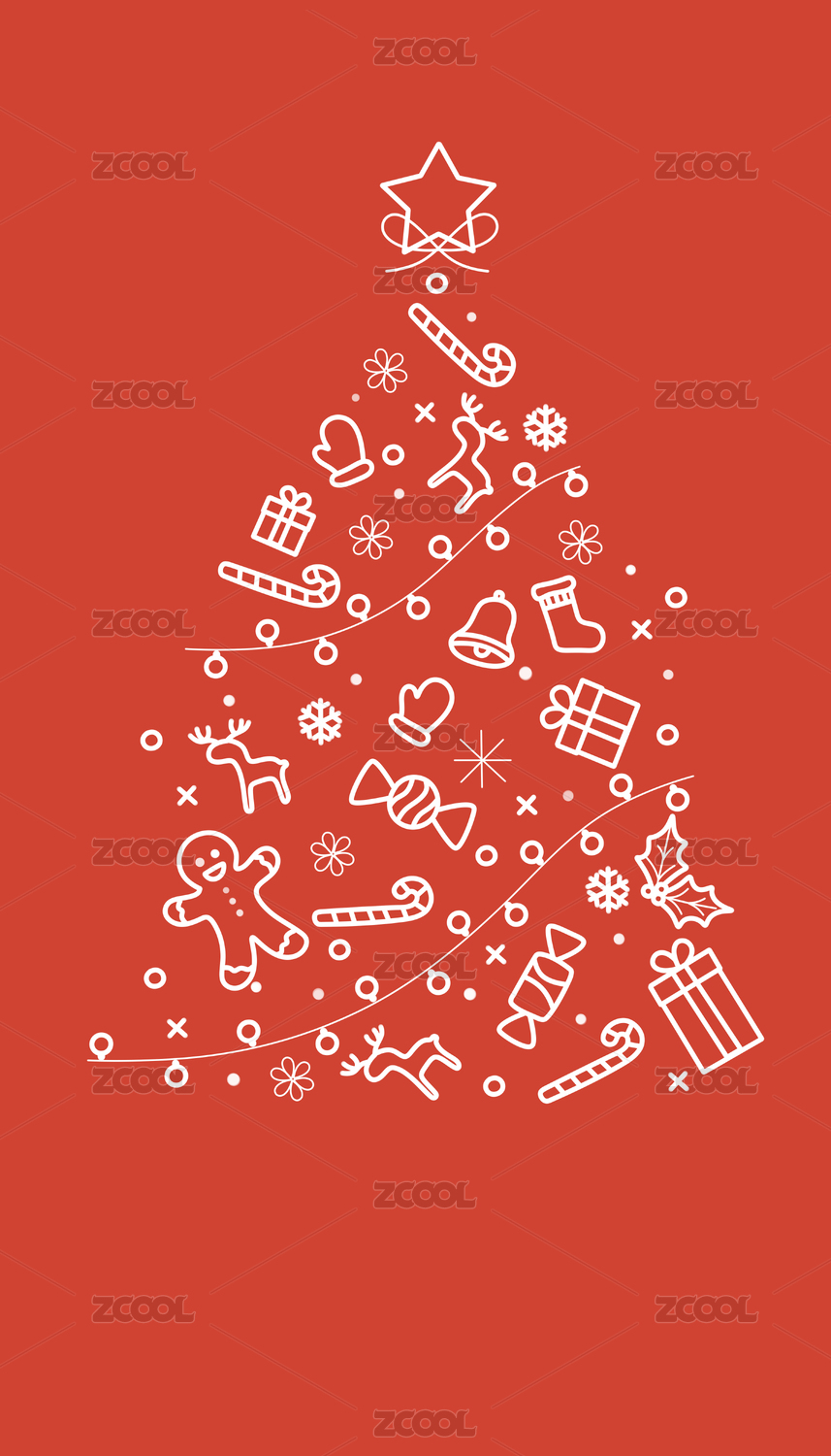 各种圣诞卡通图案组成的抽象圣诞树插画