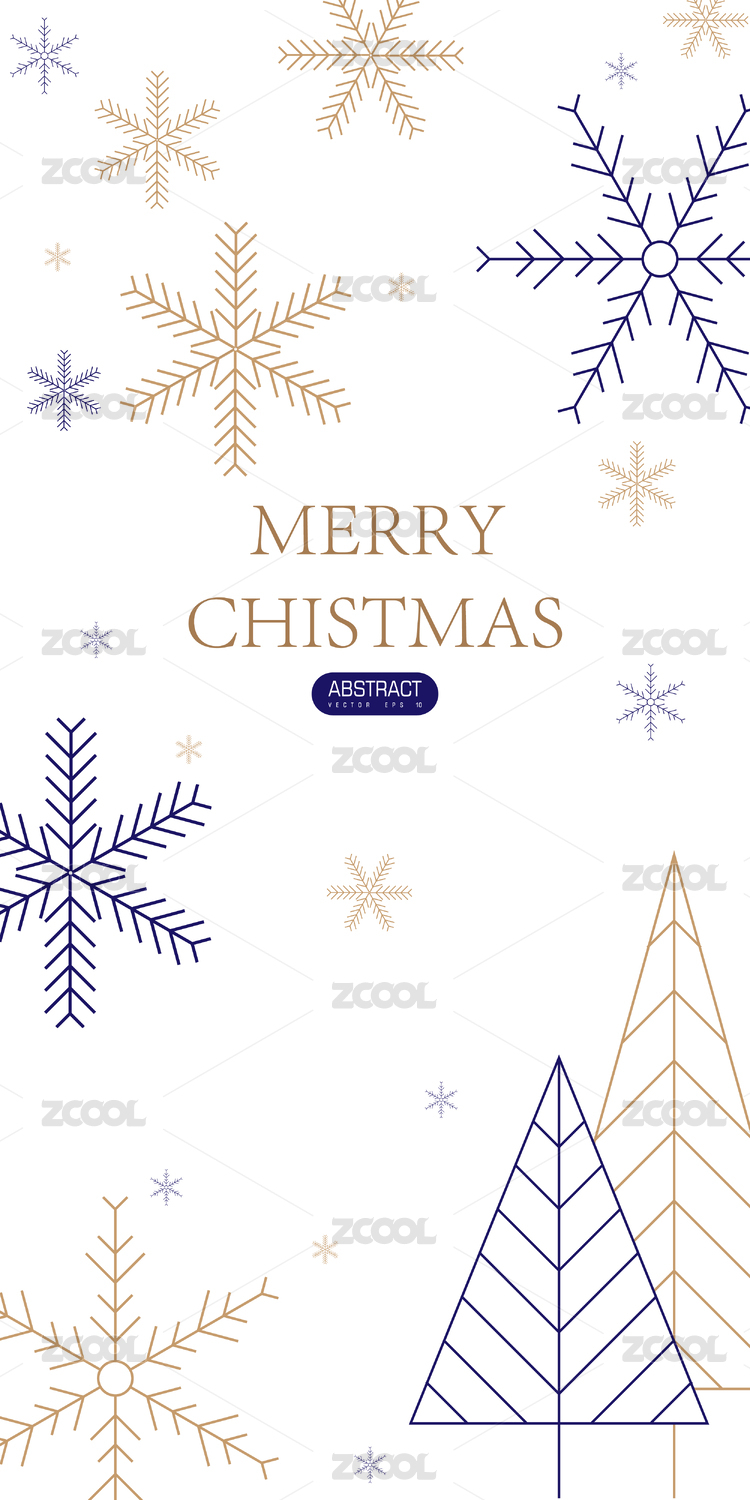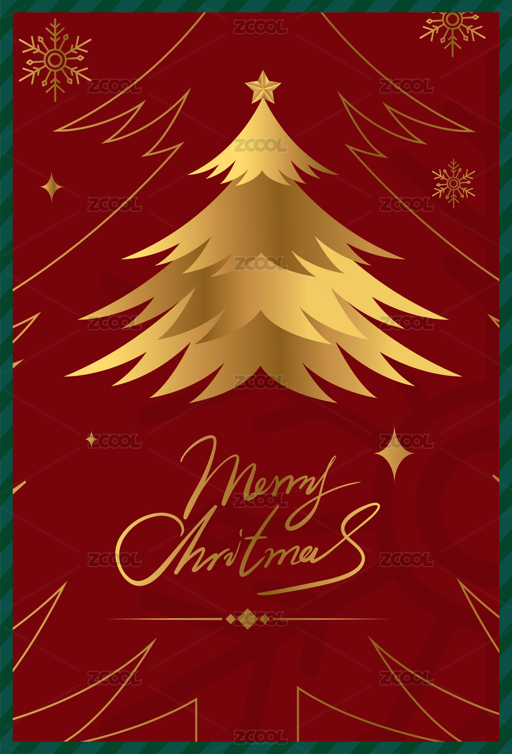 圣诞节圣诞树金色雪花高端贺卡矢量图