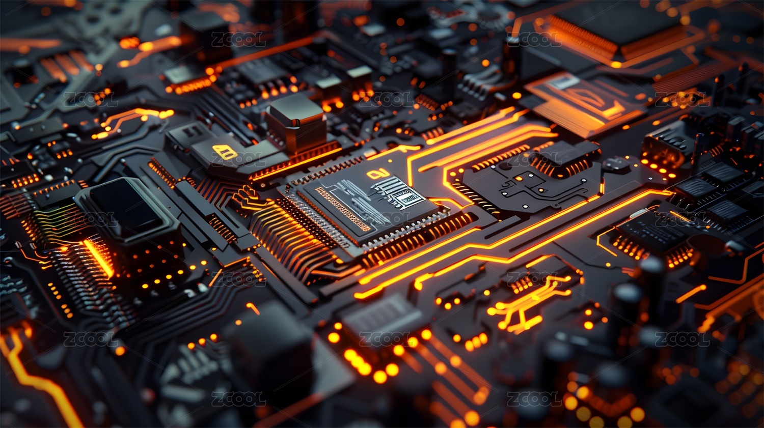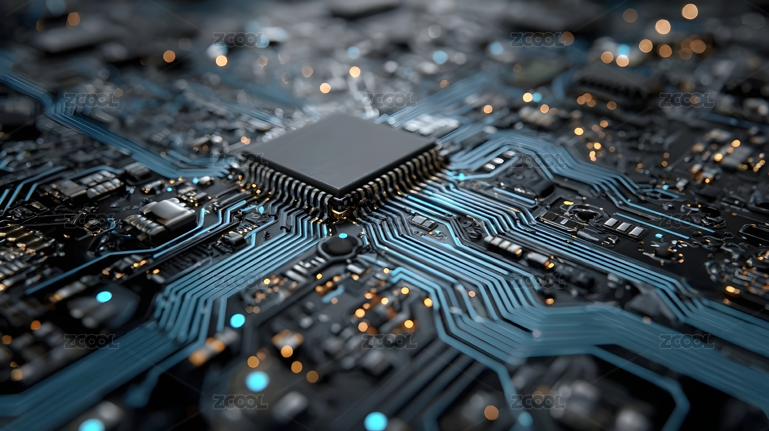 计算机,电脑芯片,电路板,电子行业,AI数字艺术,中央处理器,科学技术,母板,计算机部件,特写