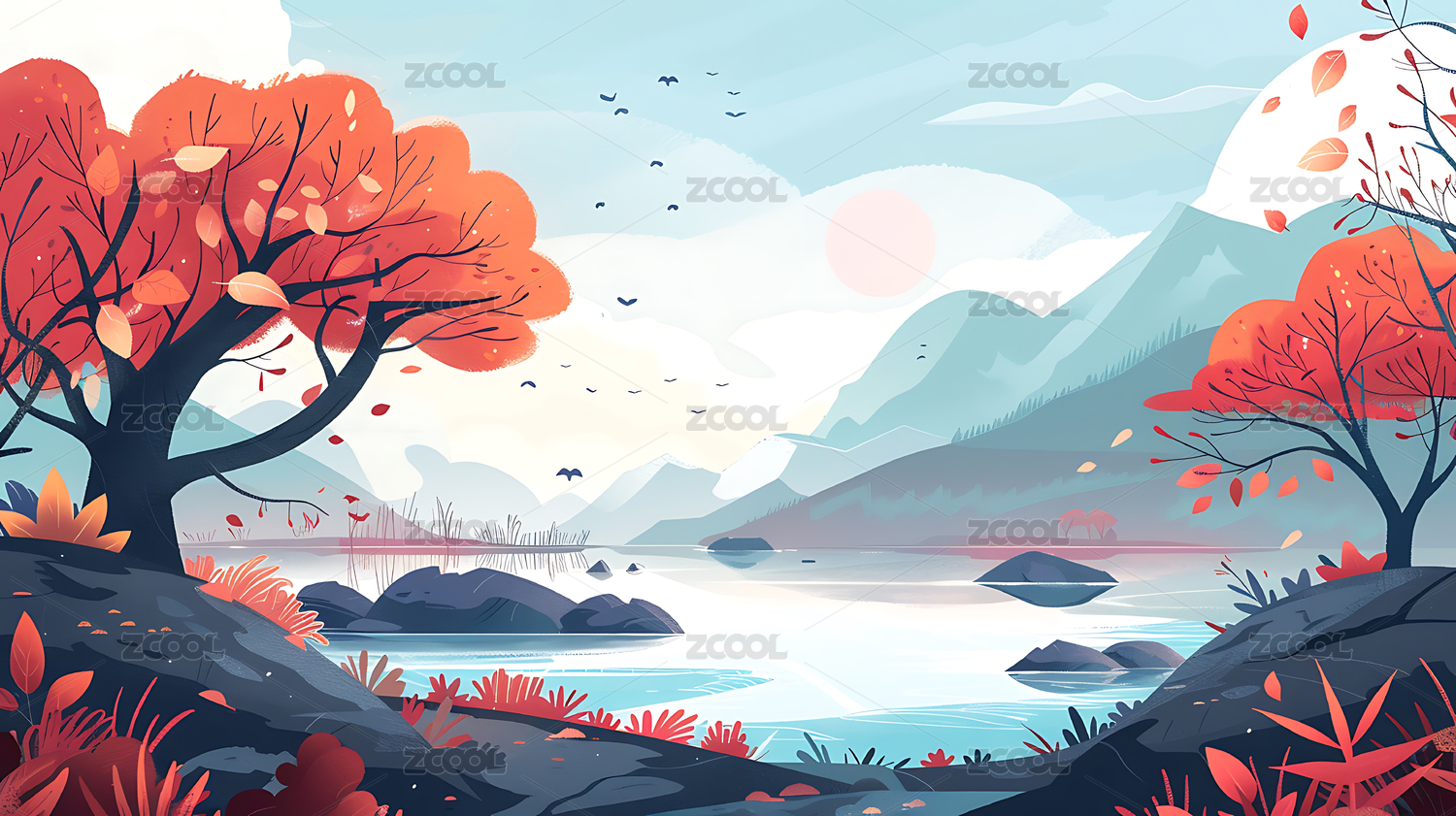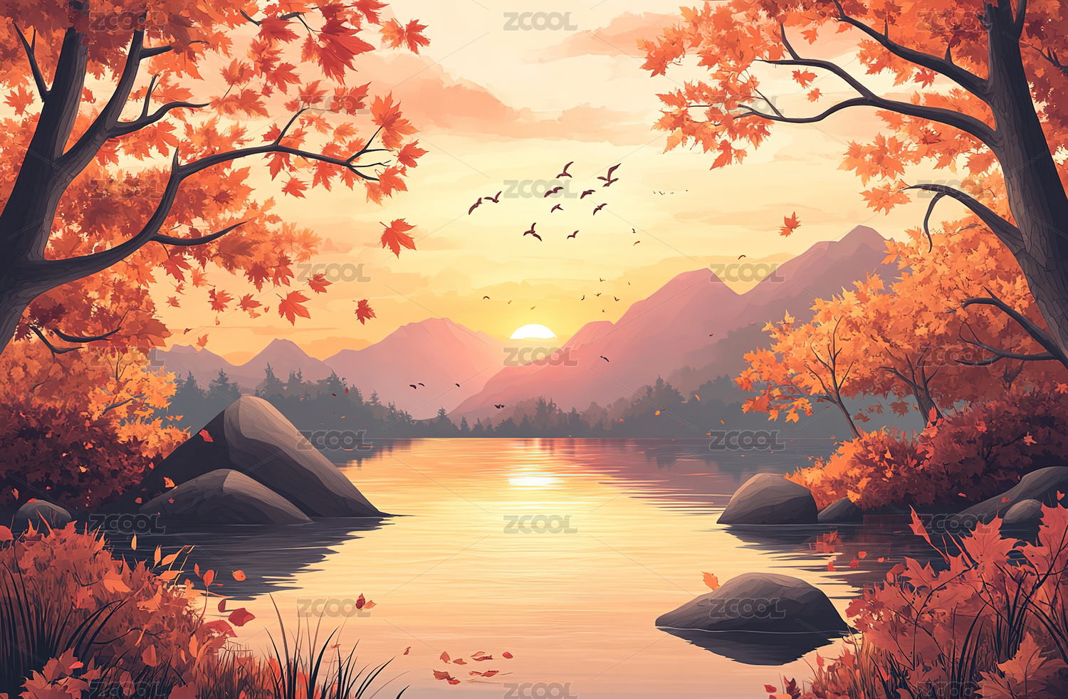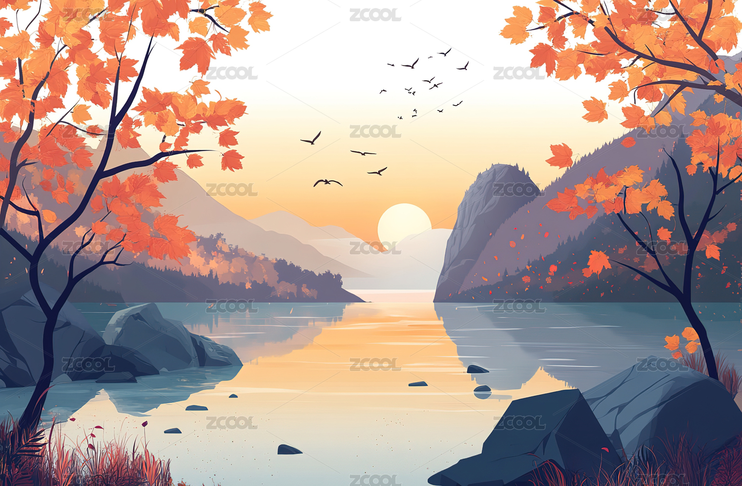 风景,户外,树,地形,天空,高山,背景,插画,日落
