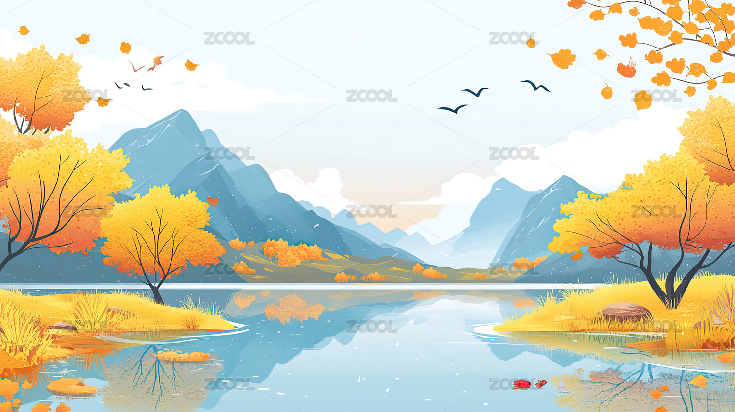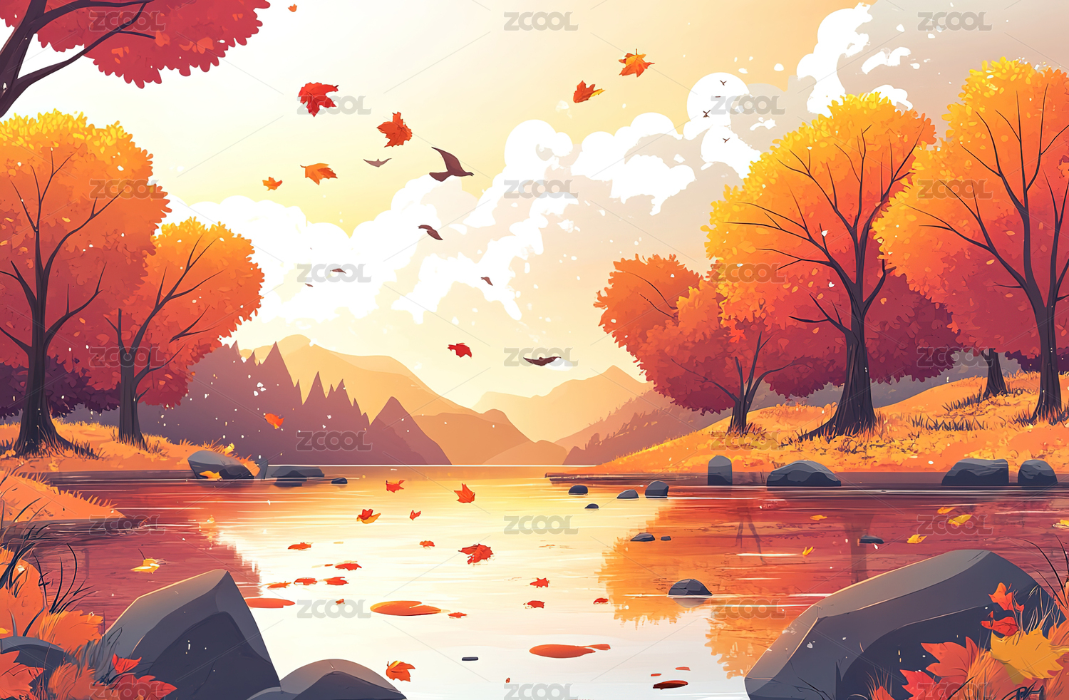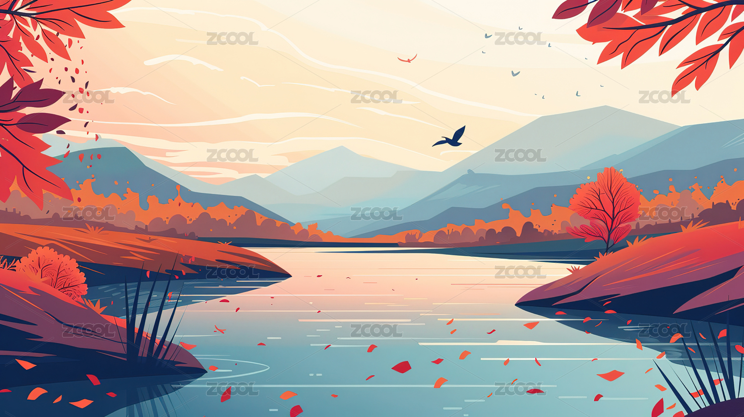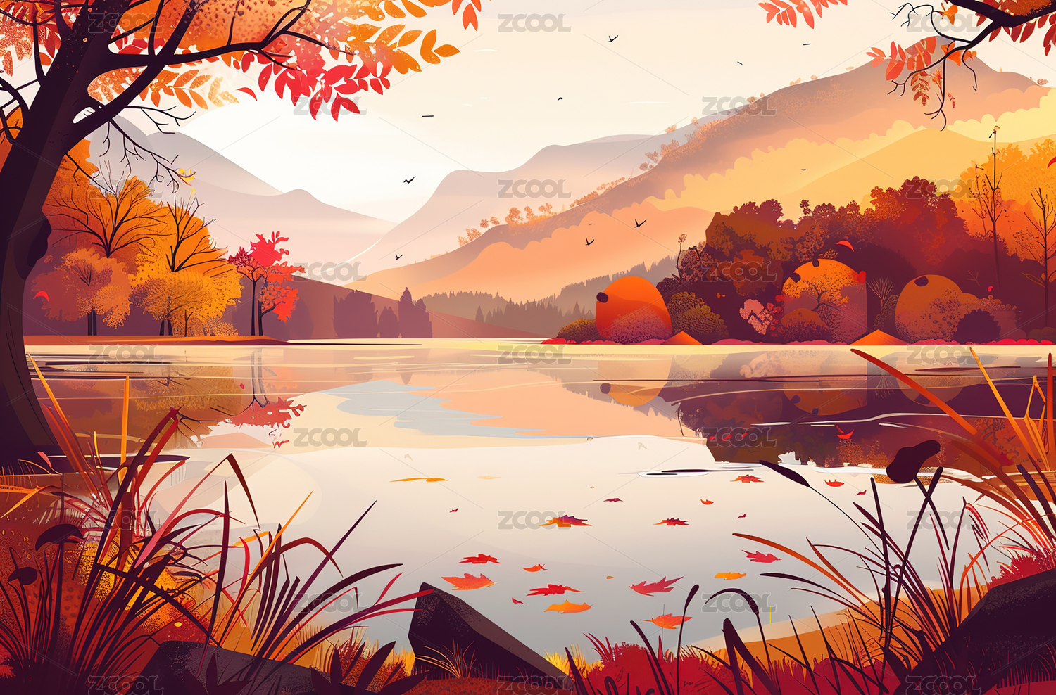 风景,户外,树,地形,天空,高山,背景,插画,日落