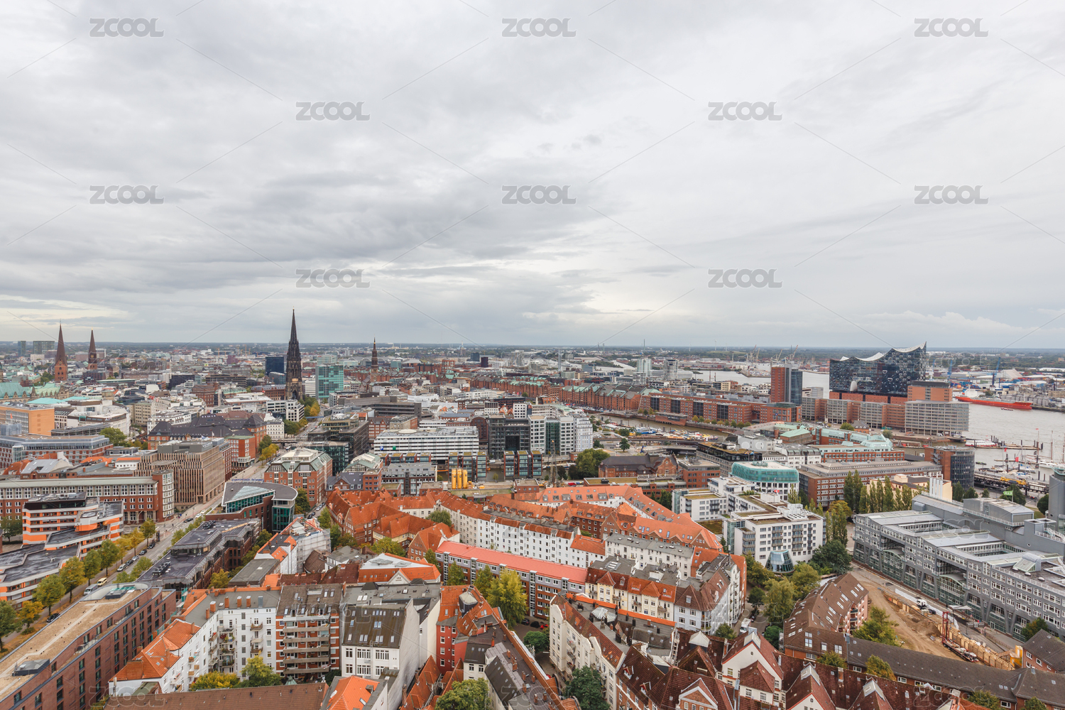 德国汉堡阴天,城市景观俯视图