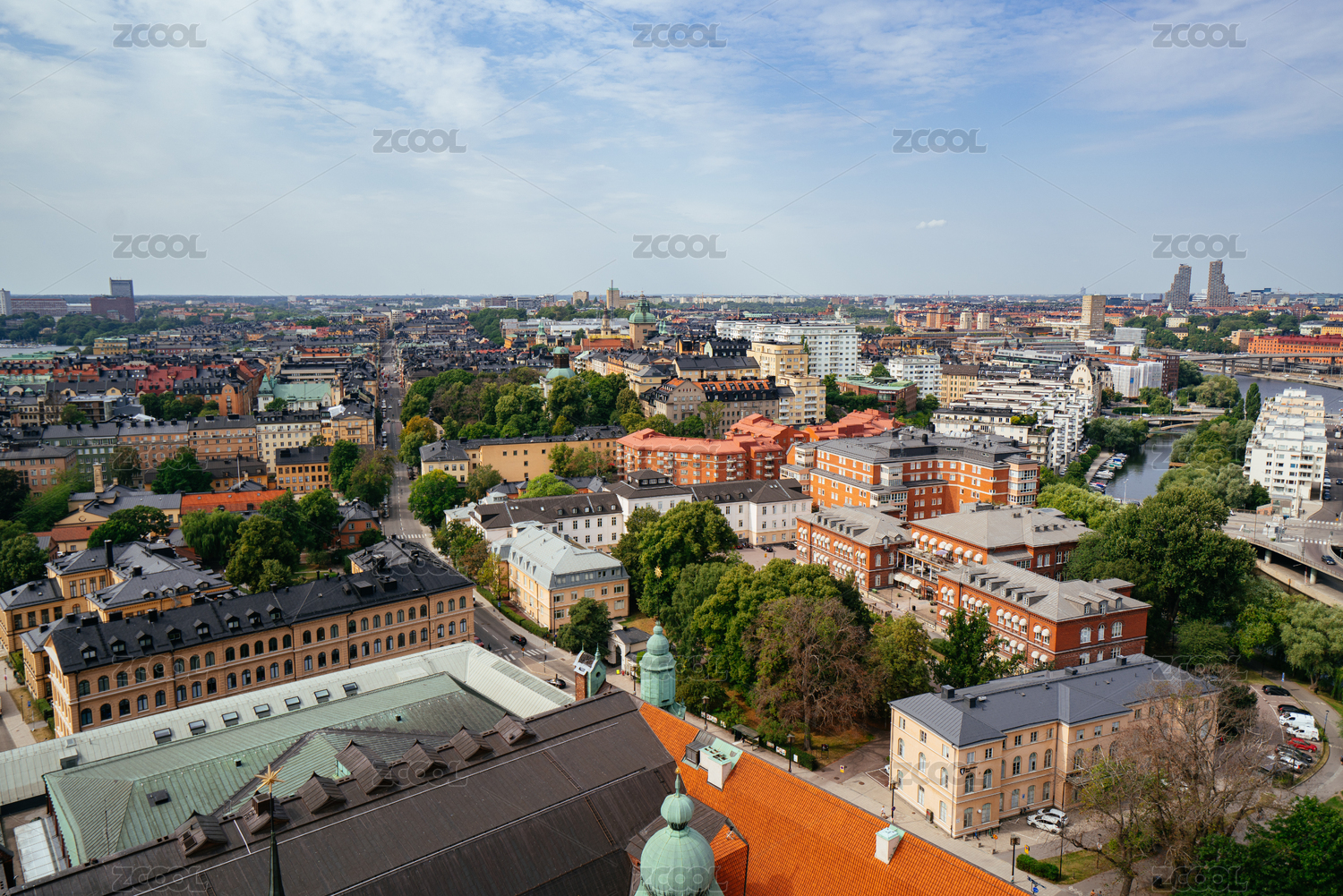 俯瞰瑞典首都斯德哥尔摩城市天际线全景风光