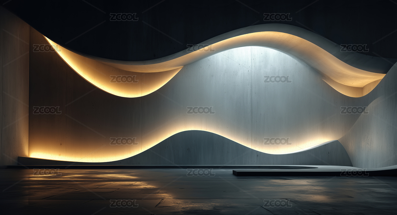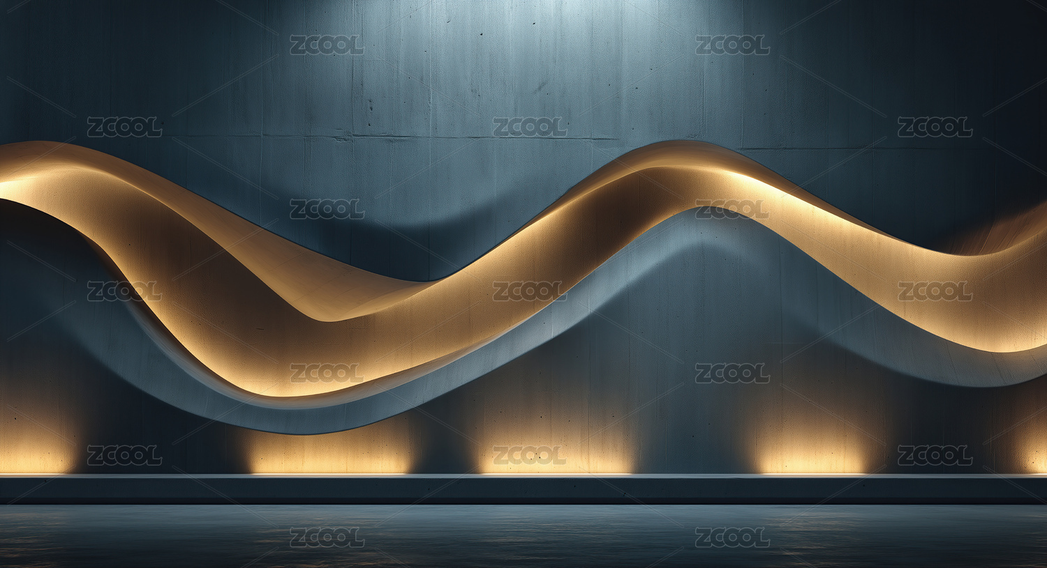 墙壁上的波浪造型搭配光线艺术效果