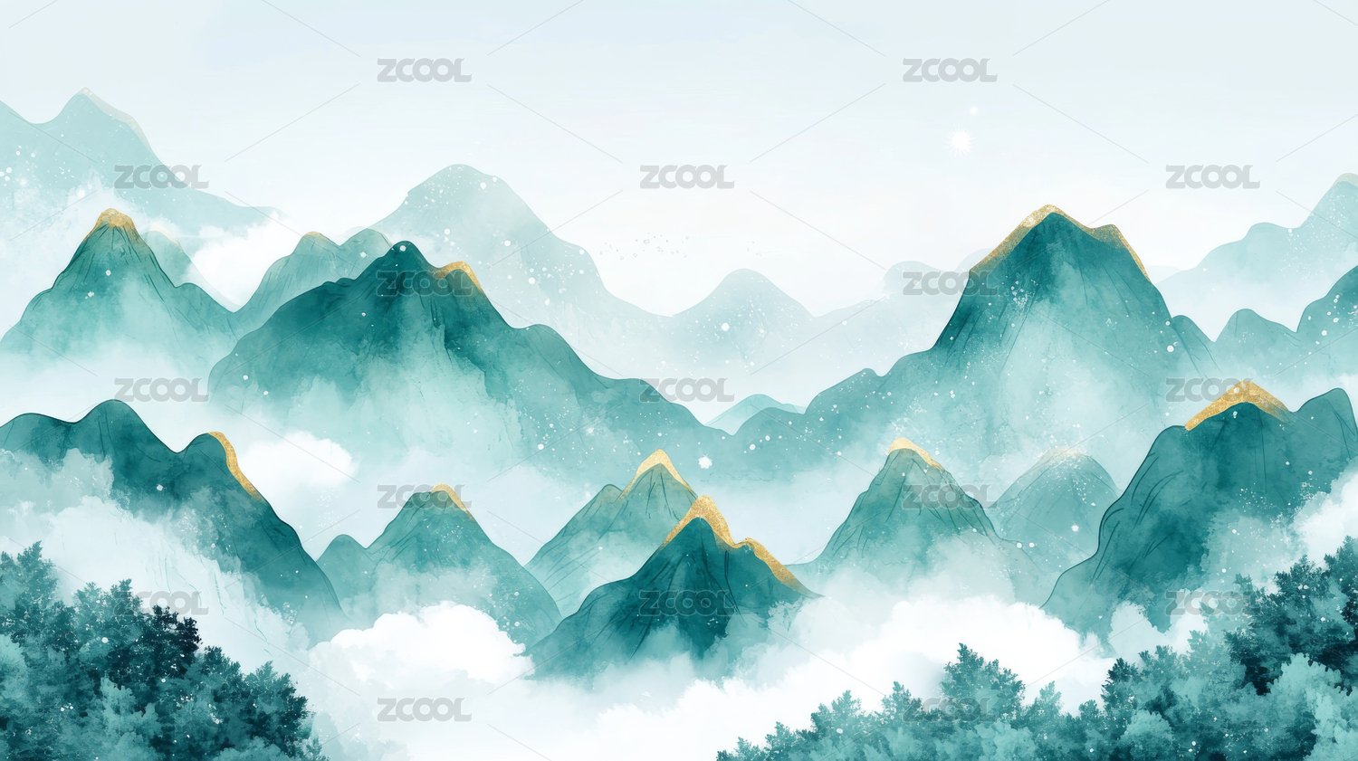 蓝色抽象意境水墨山水画中国风写意山水背景