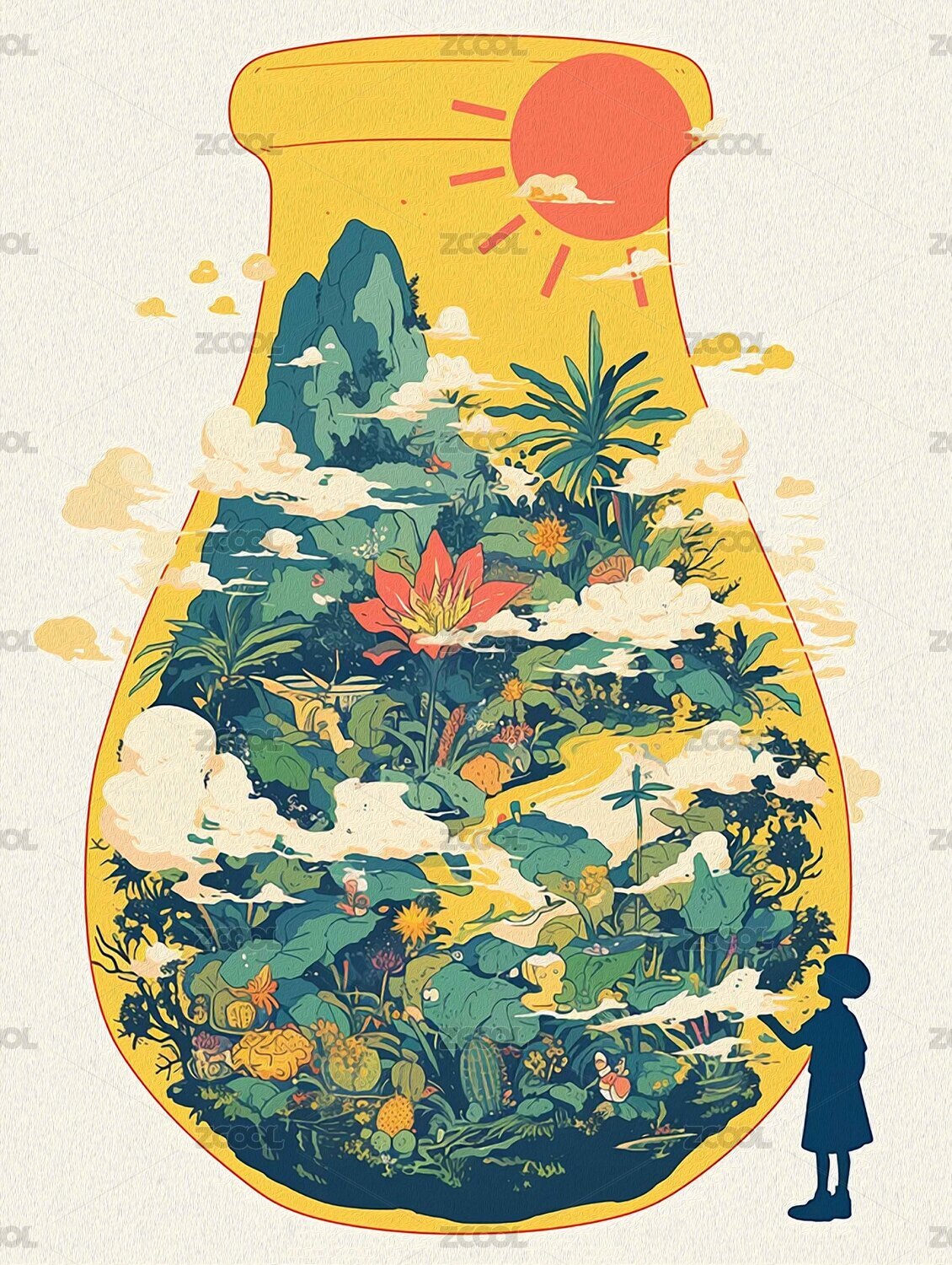 花瓶,女孩,仙人掌,世界,旅游,前方,思考,远行,看世界,背影
