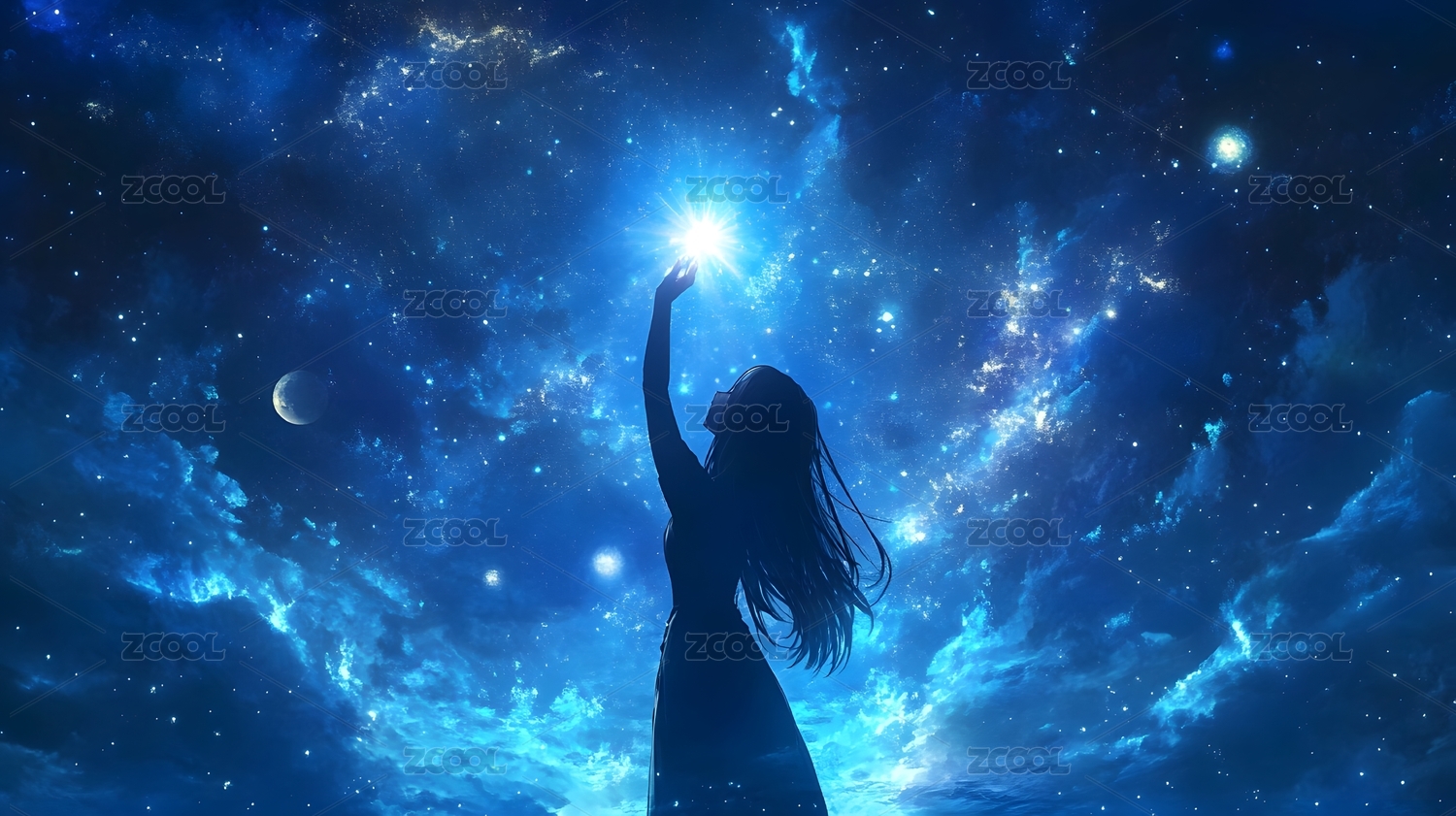 星空天空星云唯美震撼壁纸场景夜晚人物