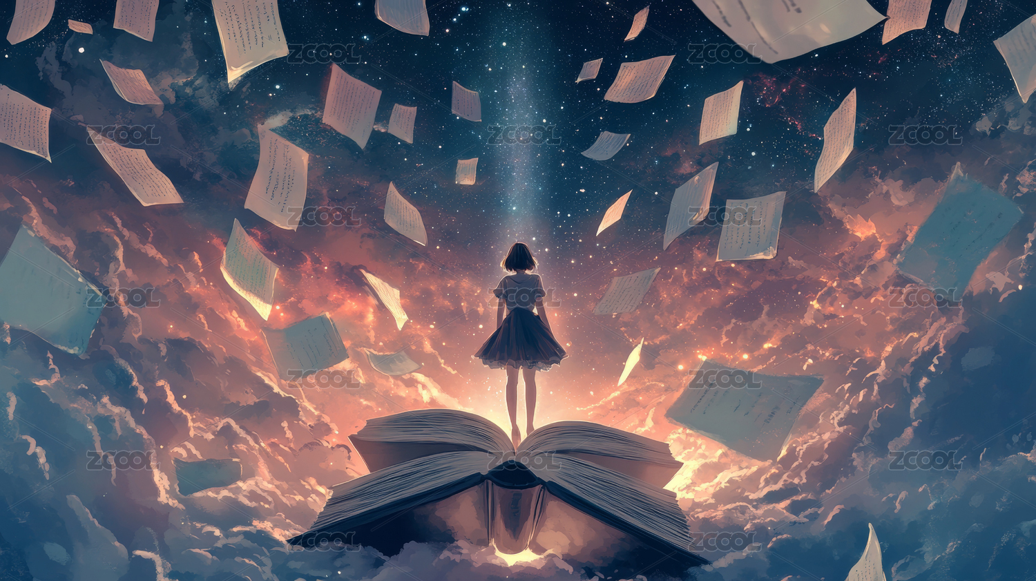 AI数字艺术,卡通,风导,学习,海报,春天,节日,教育,户外,学生