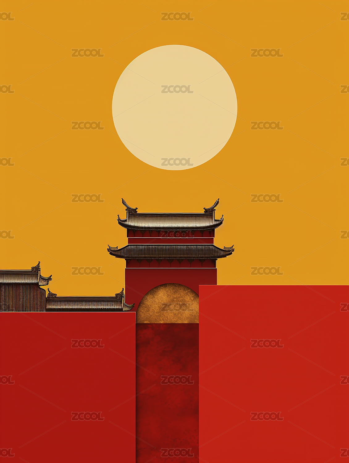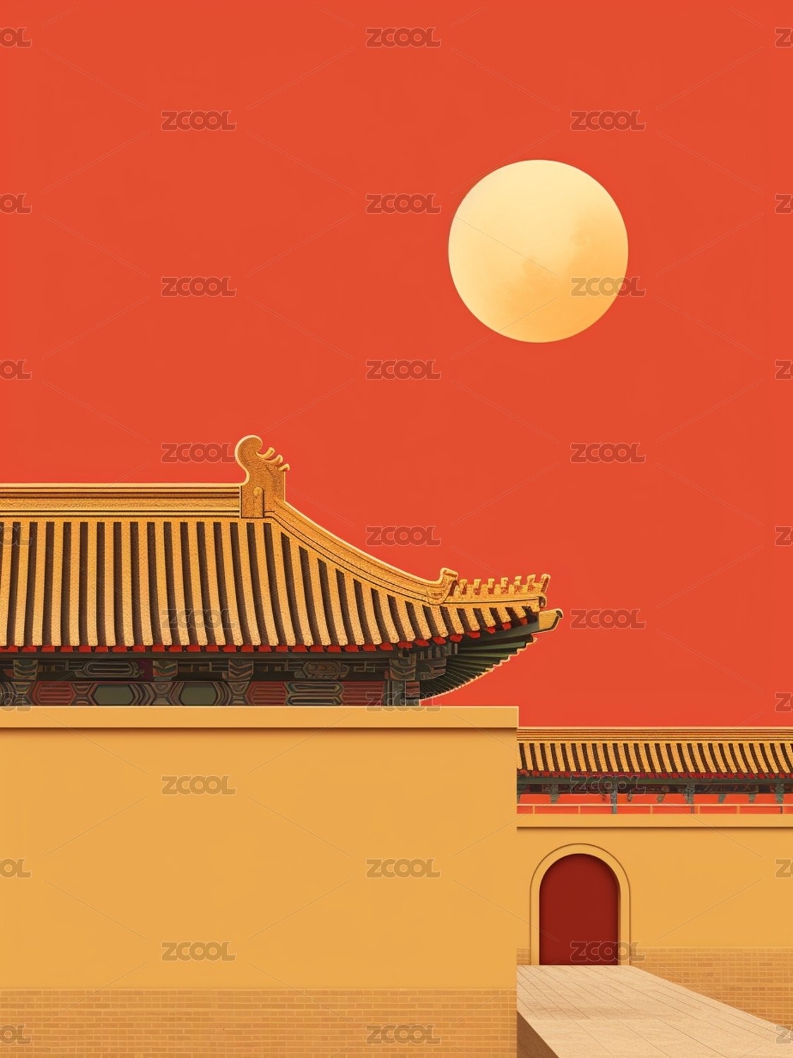 中秋,圆月,满月,中式,建筑,装饰,风格,奢华,红墙,琉璃瓦
