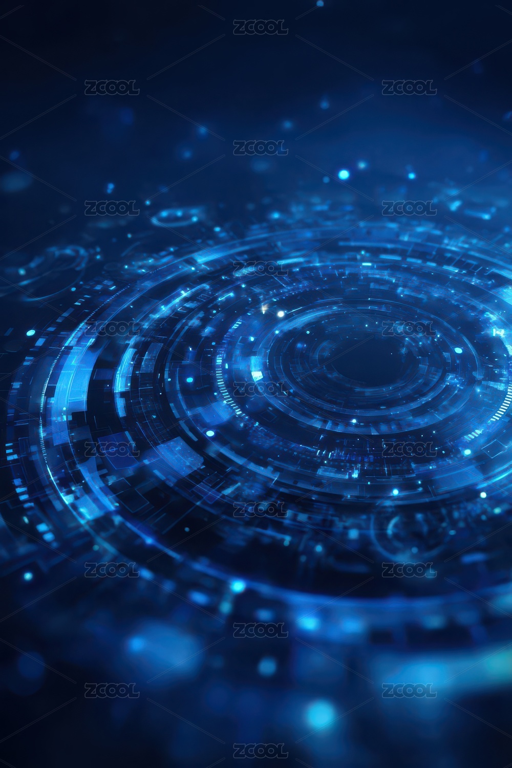 抽象科技蓝色圆环线条光圈对称放射状圆圈