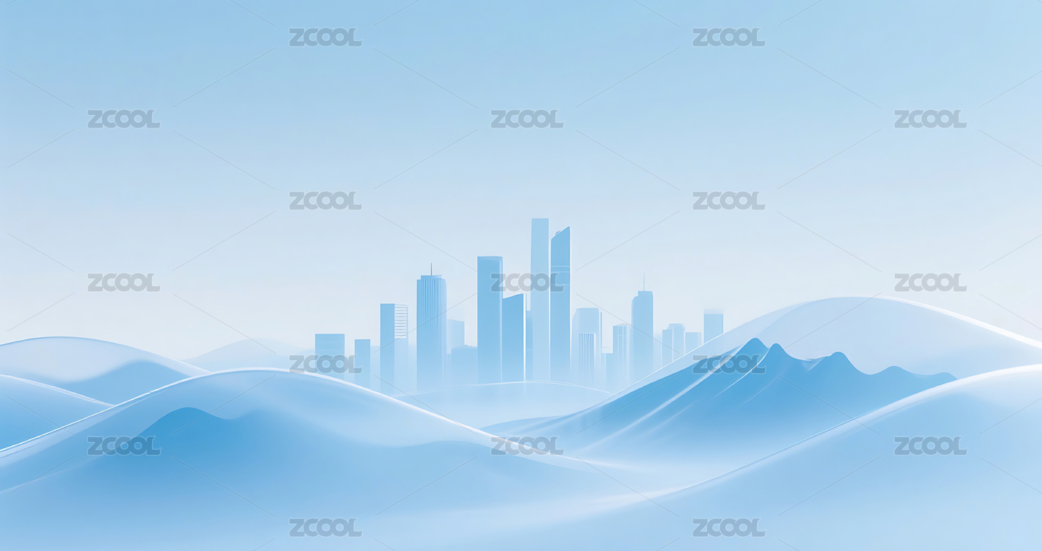 银色流动轻质山水城市建筑天际线背景