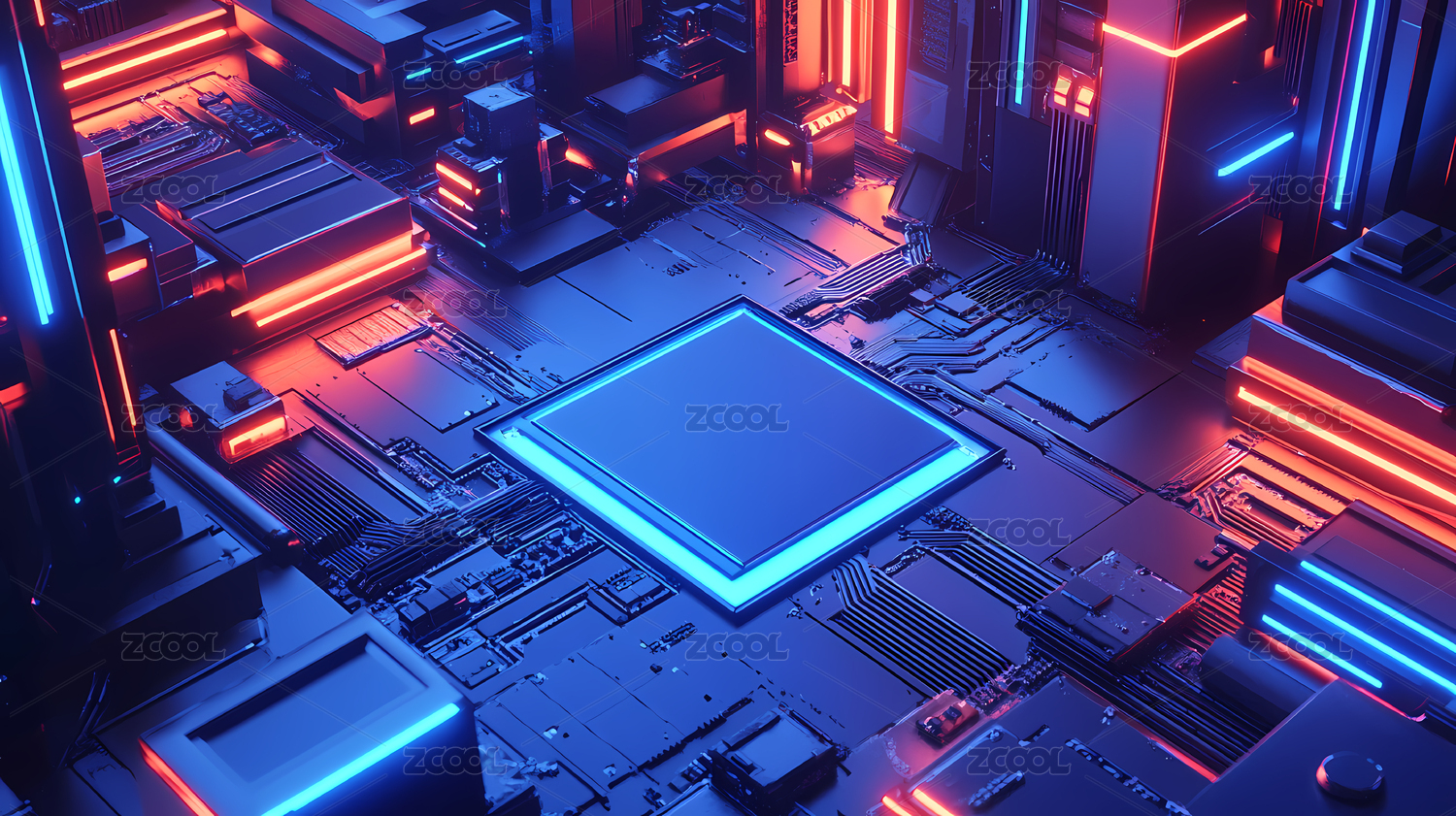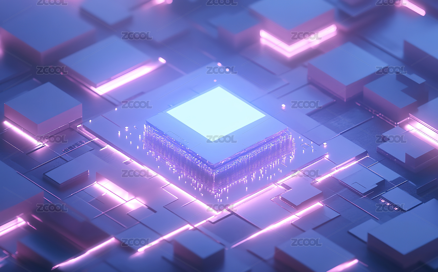 蓝色,技术,科技,现代,三维,芯片,电路,结构,电子,未来