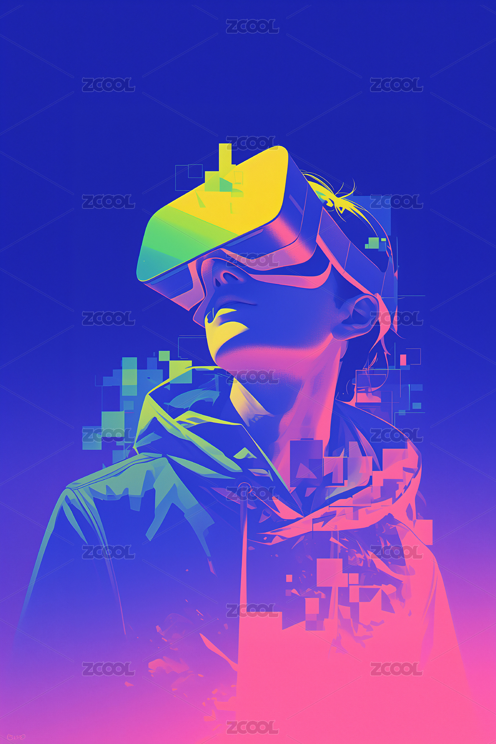 时尚男性戴着VR眼镜赛博朋克科技插画