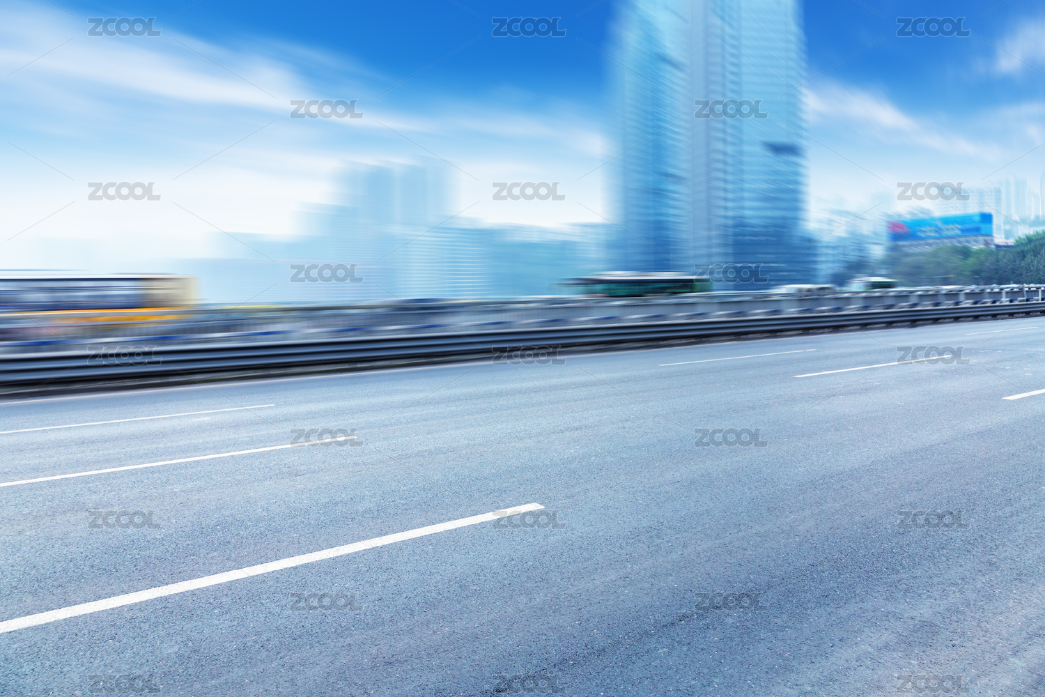 以浙江杭州钱塘新城建筑为背景的高速路面