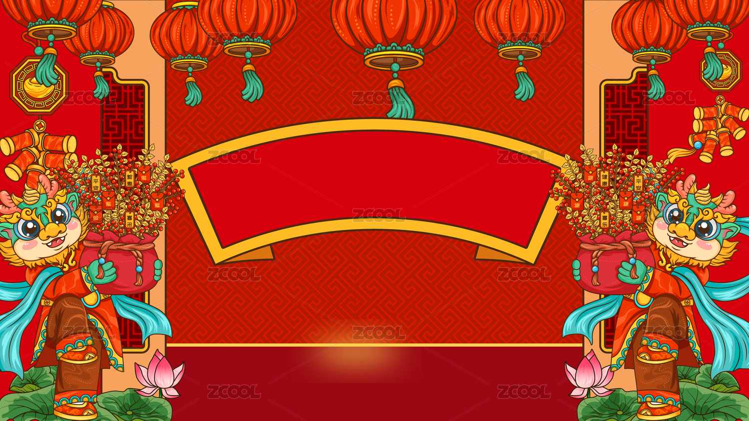龙年,背景,封面,灯笼,新年,拜年,传统,文化,红包,金币