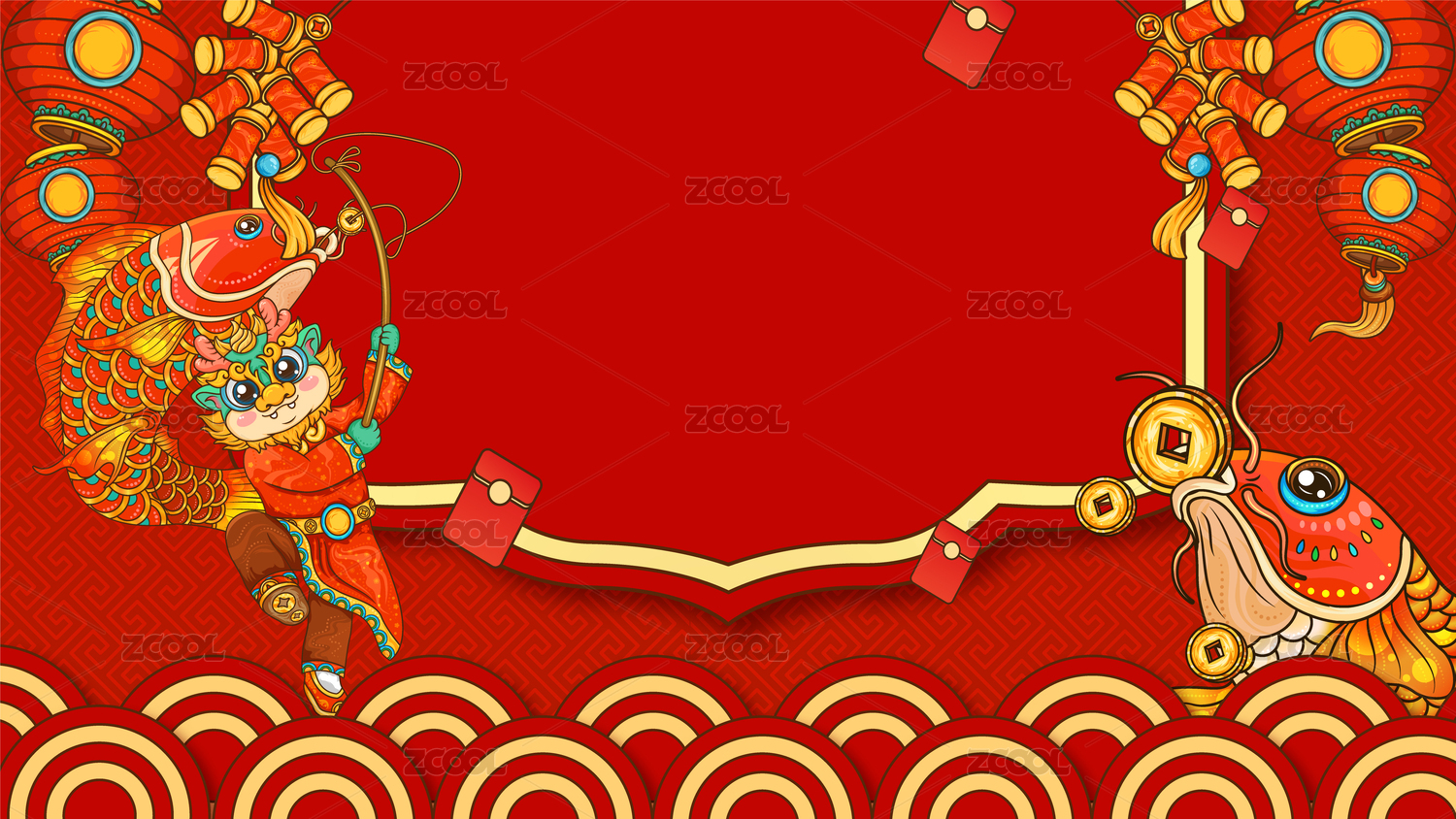矢量龙年生肖新年春节鲤鱼红包拜年封面背景