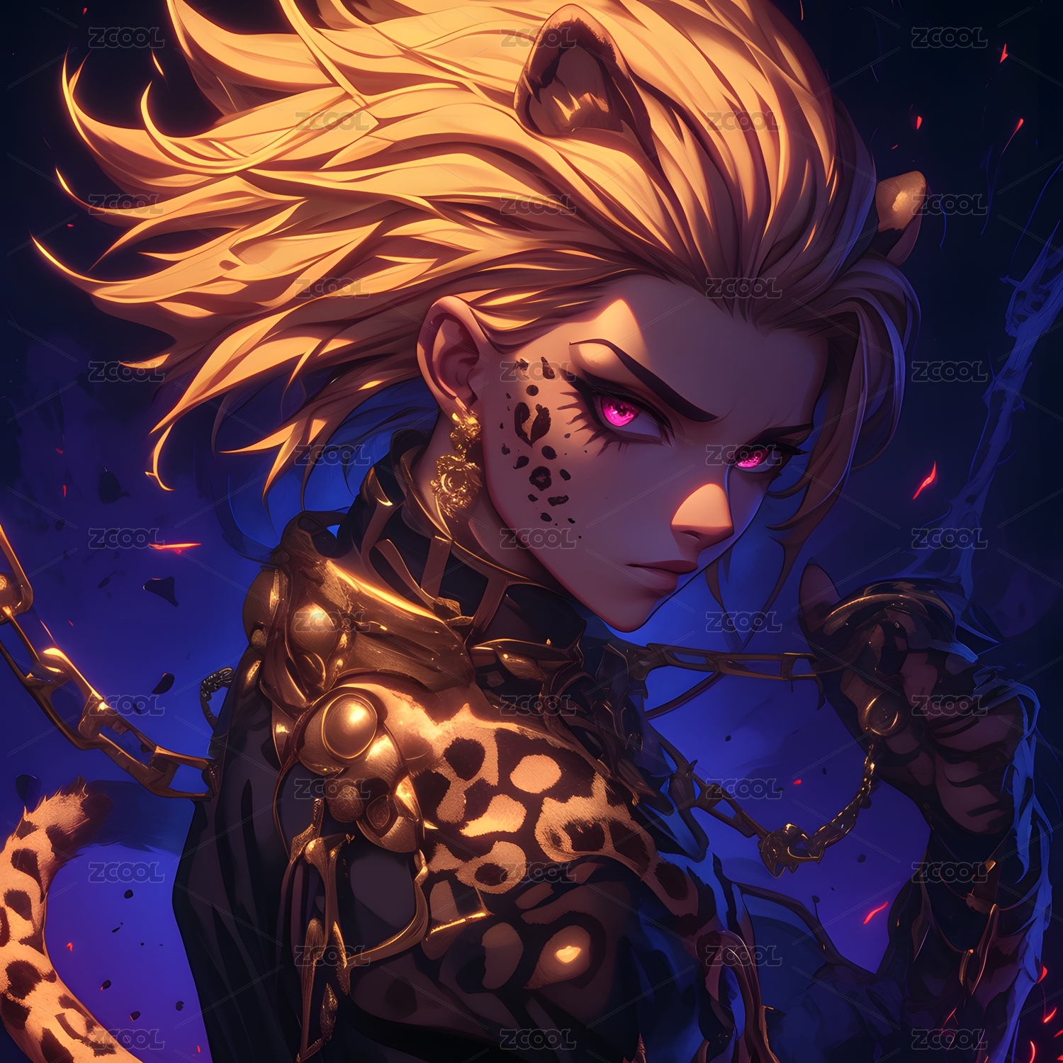 一个金钱豹纹的卡通长发少女