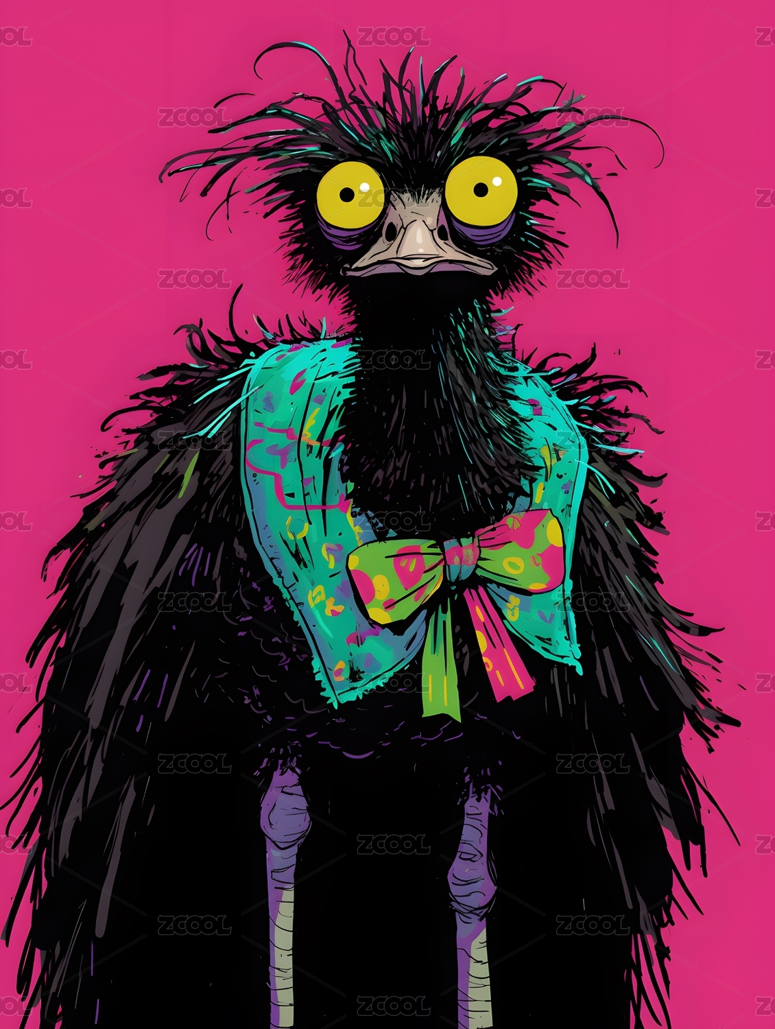 可爱童趣嘻哈涂鸦风格潮流鸵鸟插画