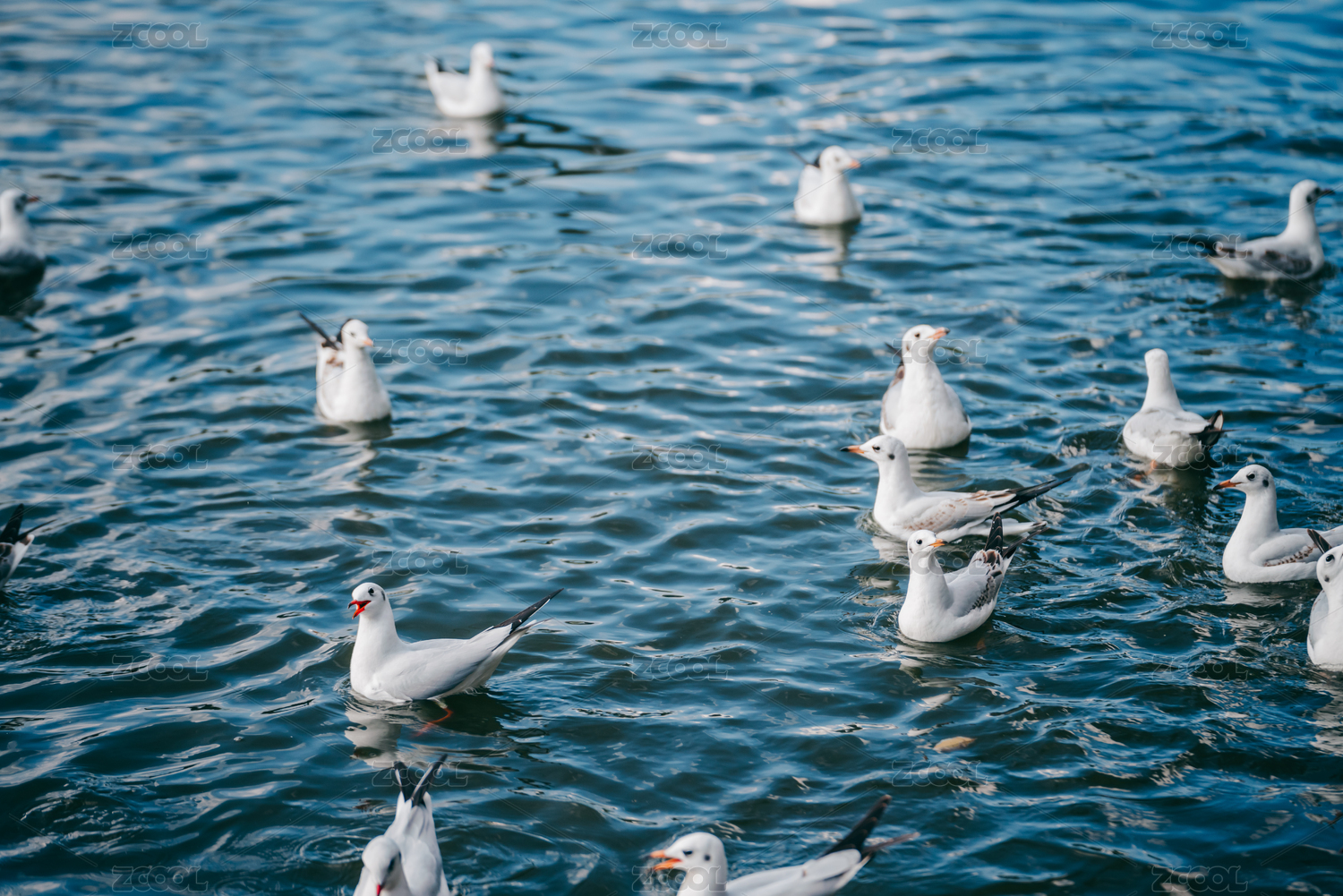 冬天水面嬉戏抢食的红嘴鸥