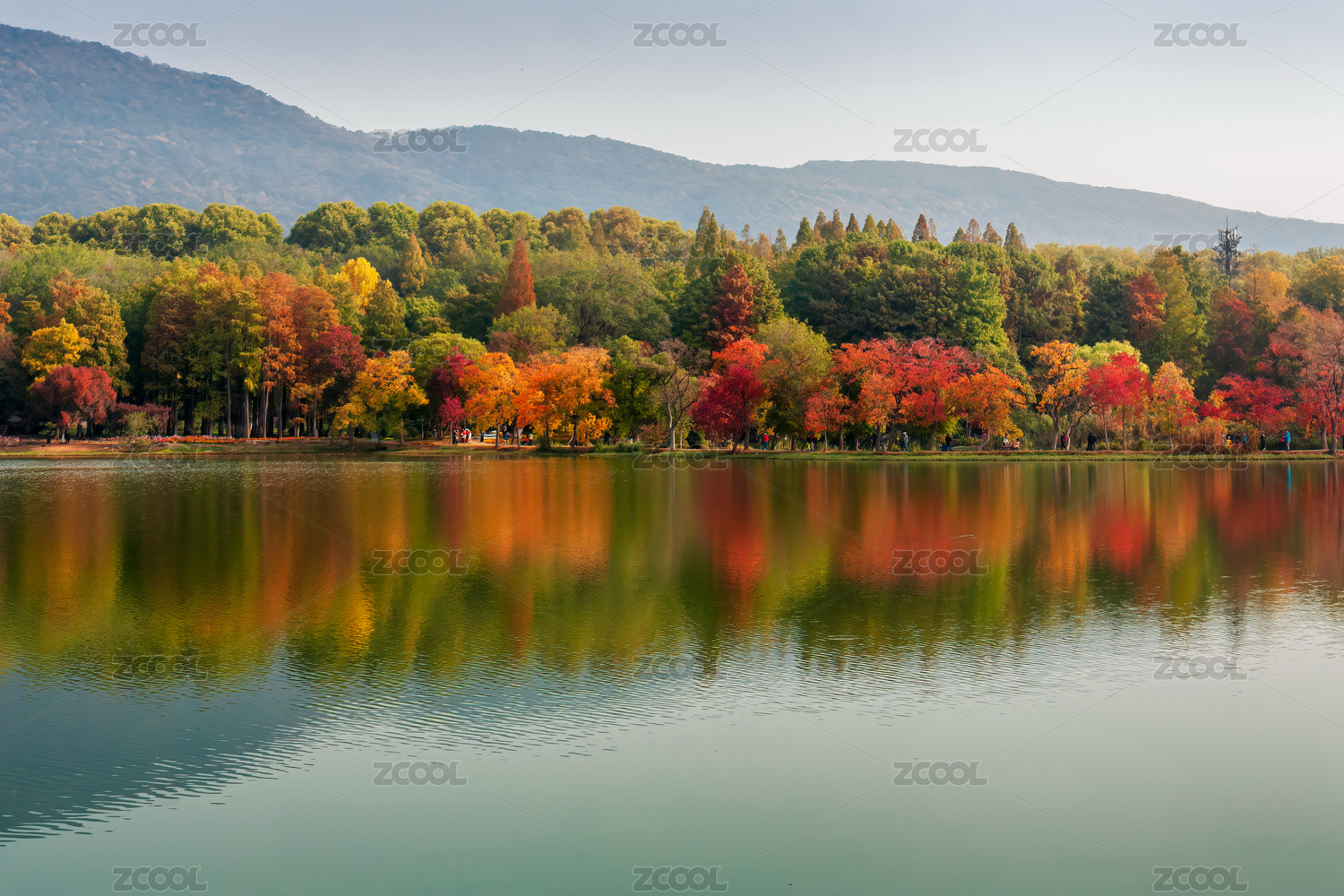 南京,中山植物园,秋色,对称,公园,倒影,清晨,秋天,秋季,乌桕