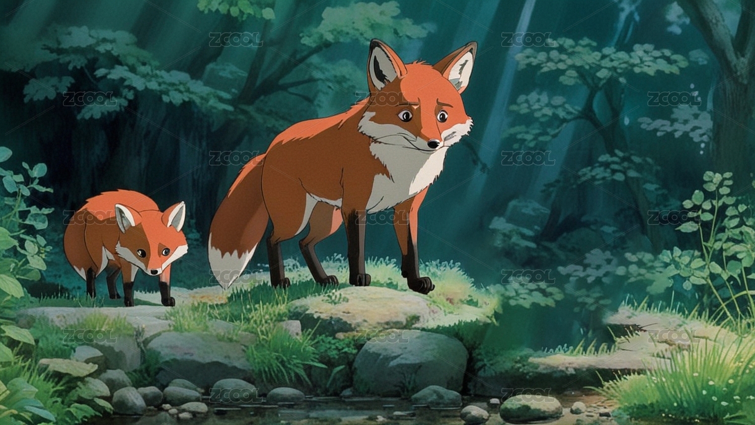 日漫,狐狸,插画,动物,AIGCFG,动漫,宫崎骏,动漫风,复古,动画