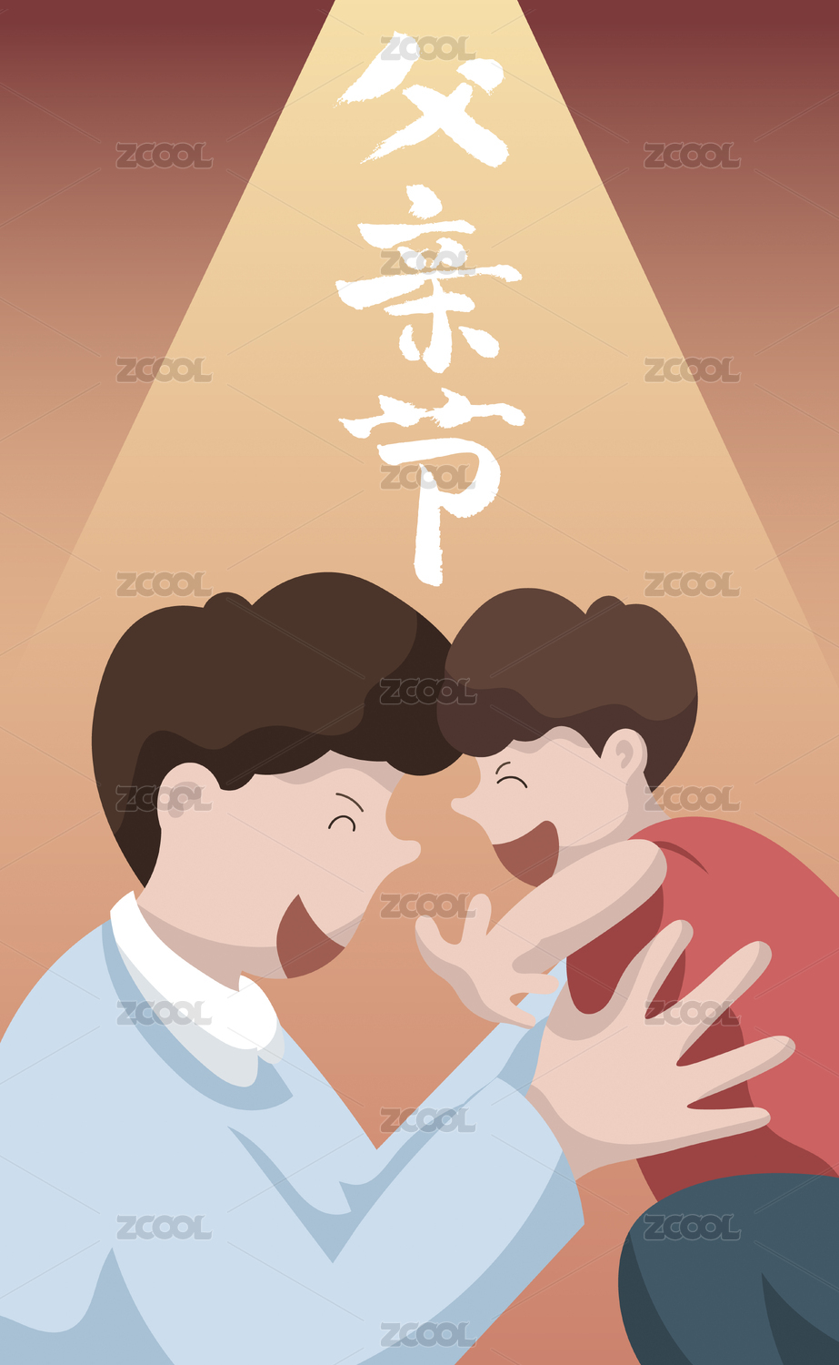 爸爸儿子击掌庆祝父亲节 手绘插画