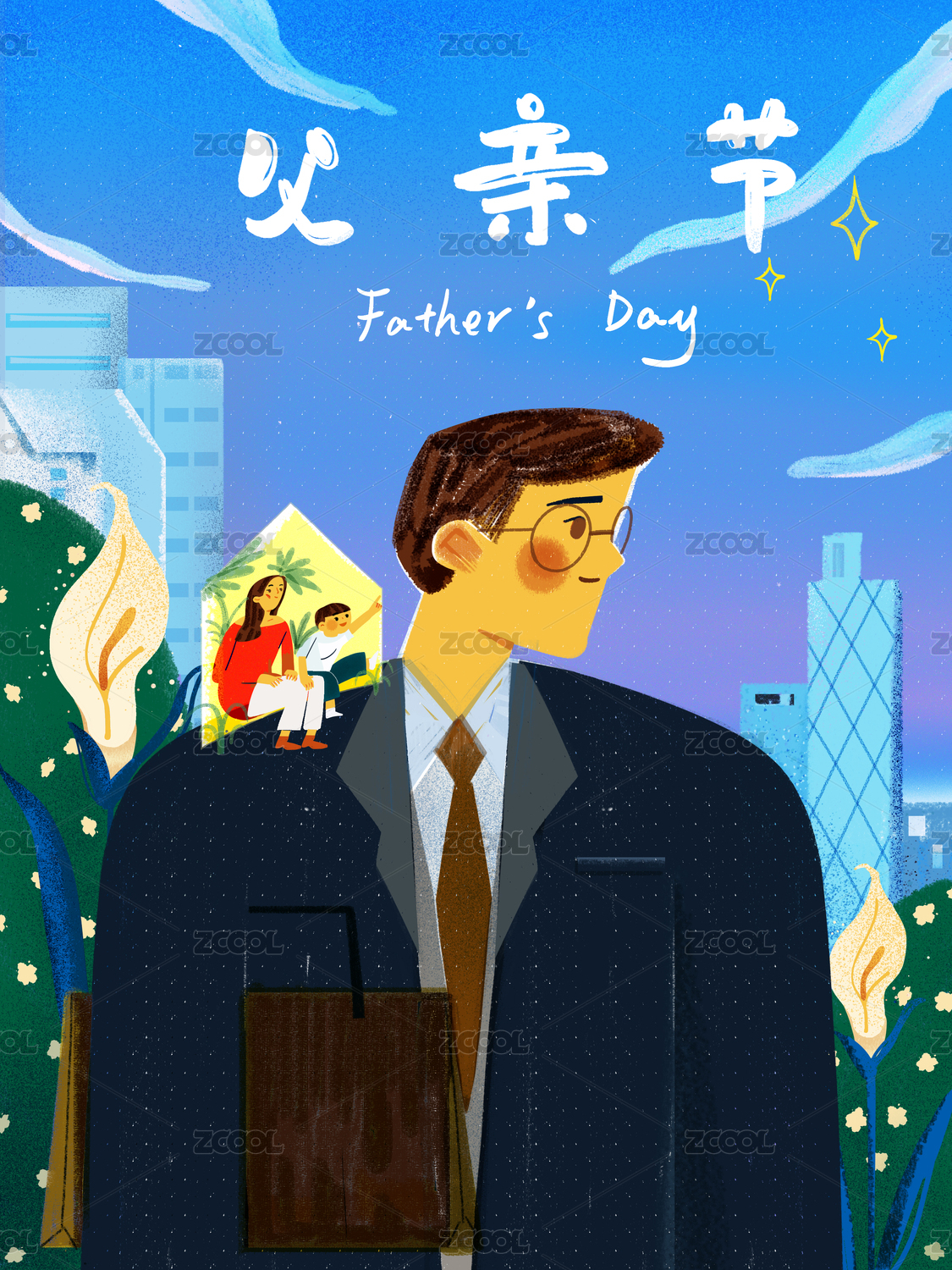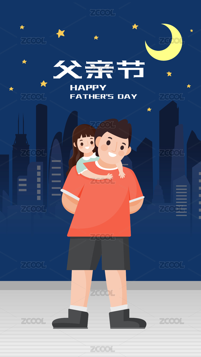 爸爸抱着熟睡婴儿的父亲节插画带文字竖版