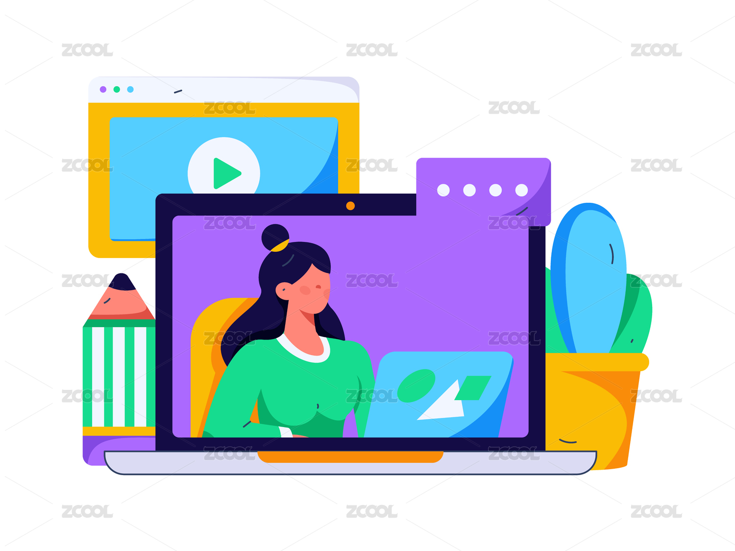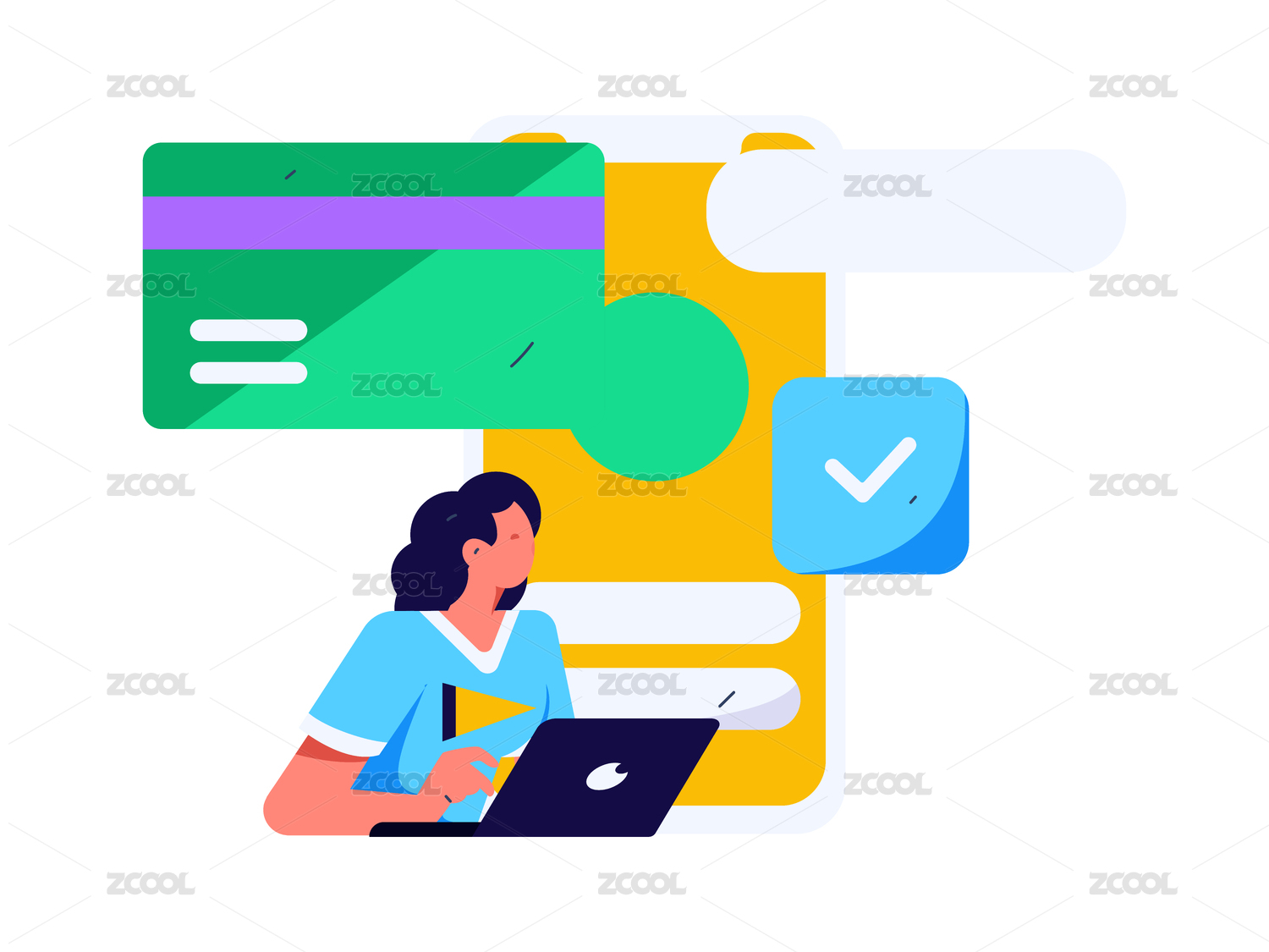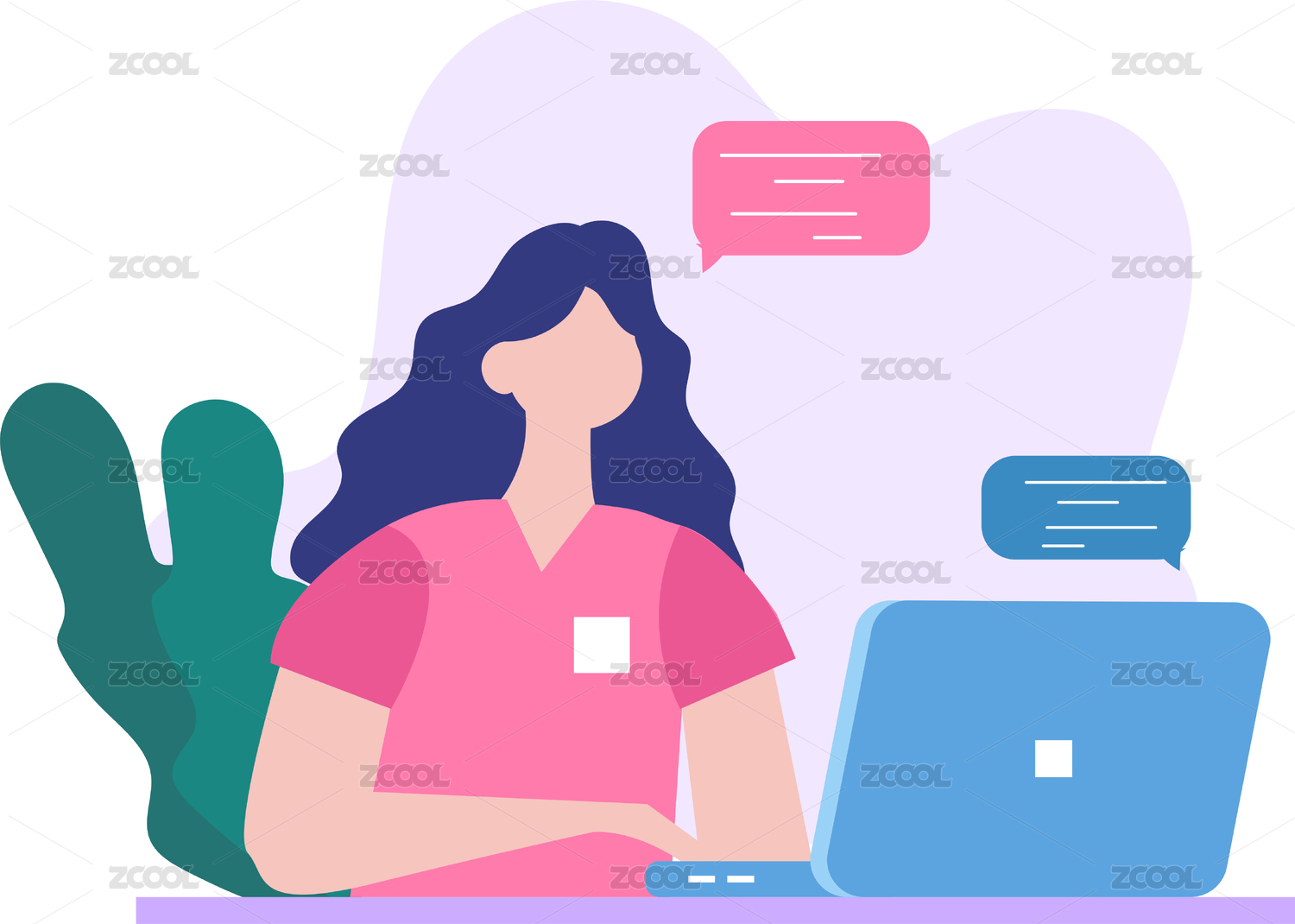 正在上班的女子,扁平矢量人物场景创意概念插画