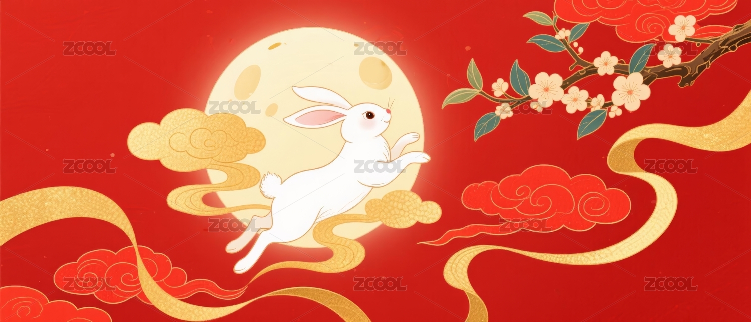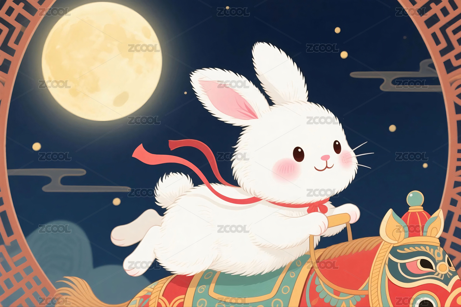 可爱的兔子抱着月饼中秋节节日庆典国潮插画