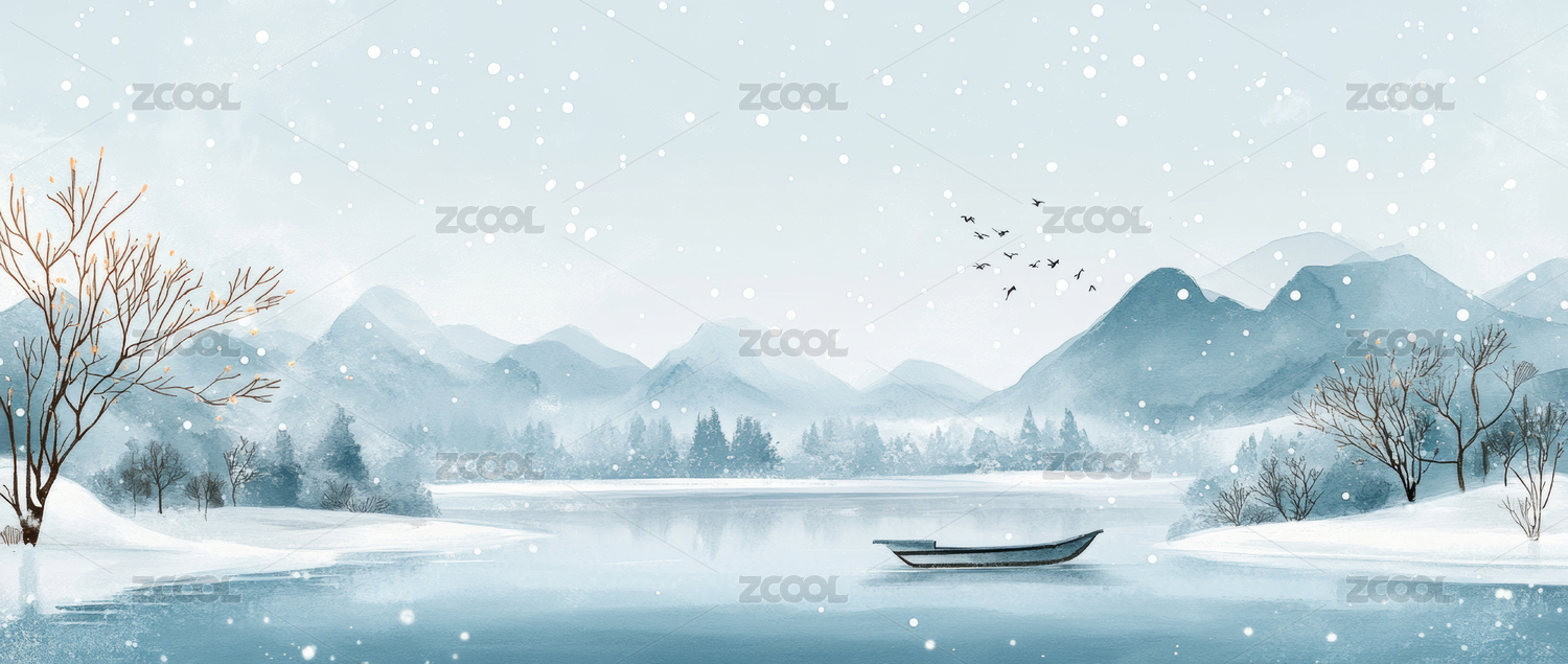 冬天的水墨风景背景