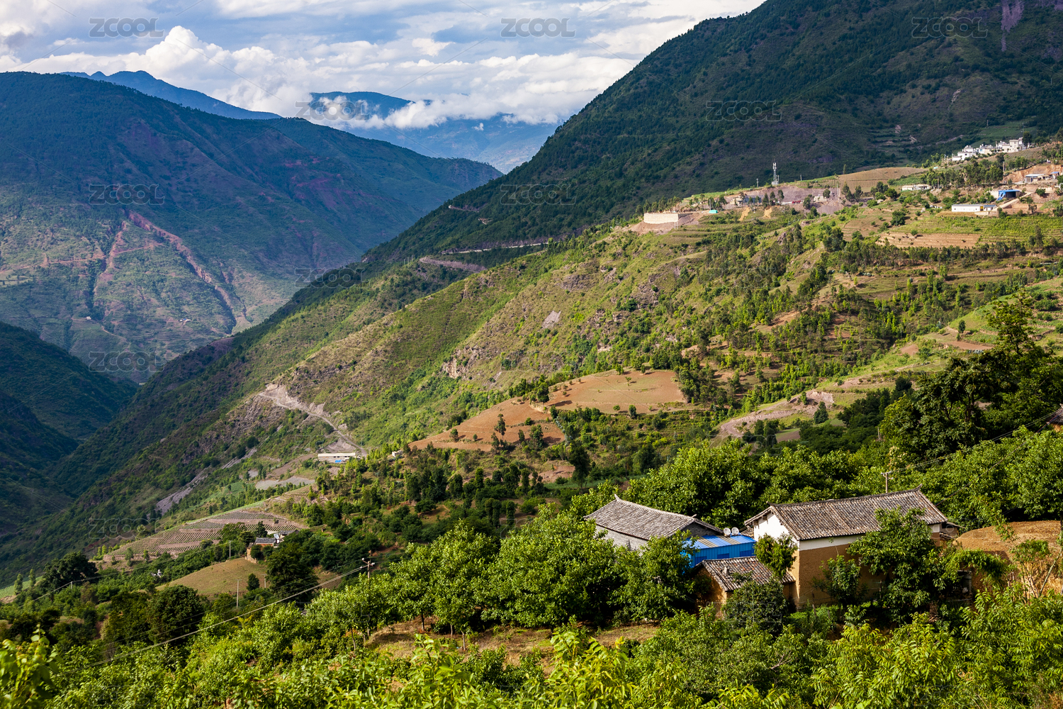 云南临沧市凤庆县鲁史古镇的田园风光和民居