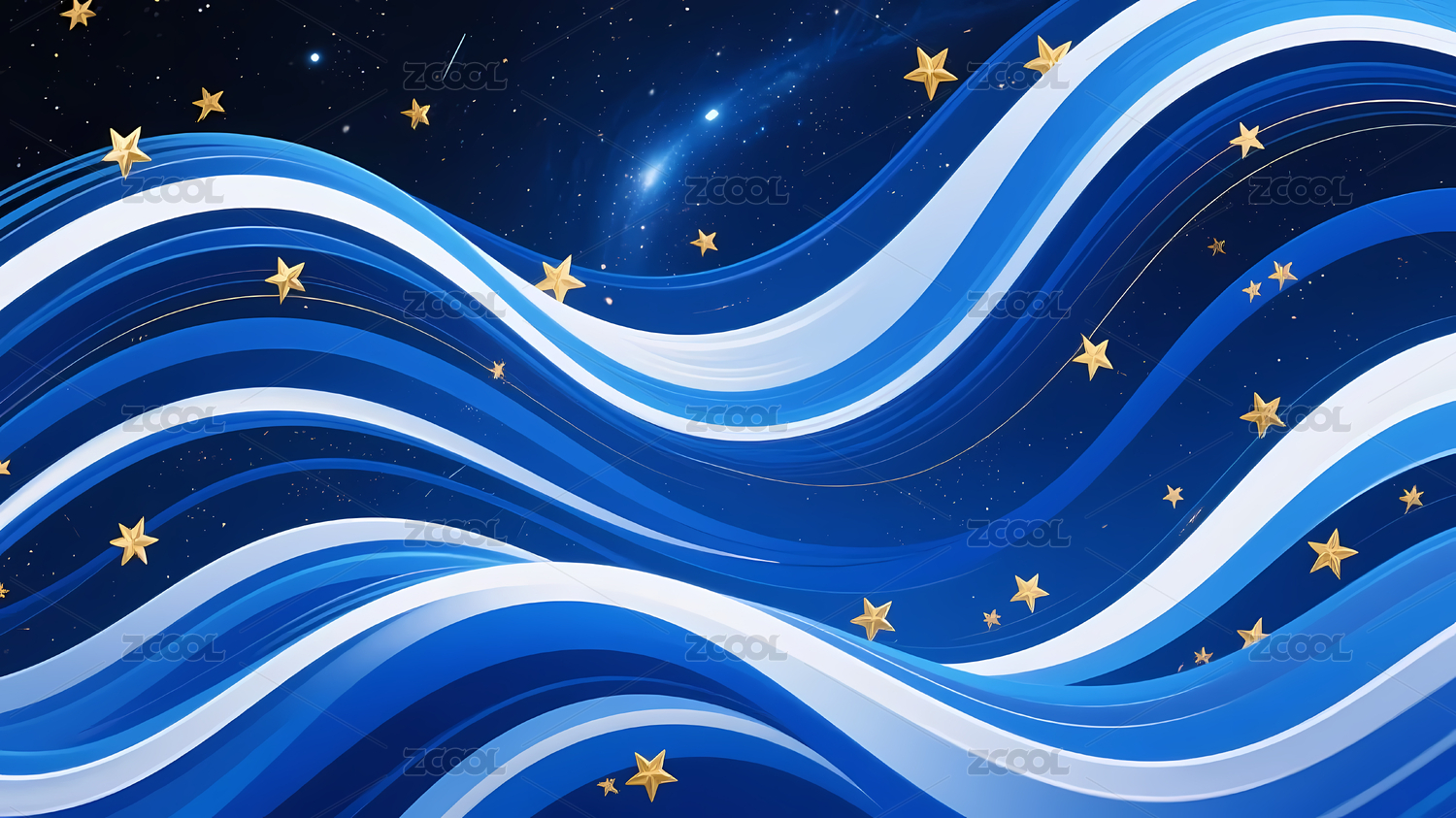蓝色波浪线条与夜空星星