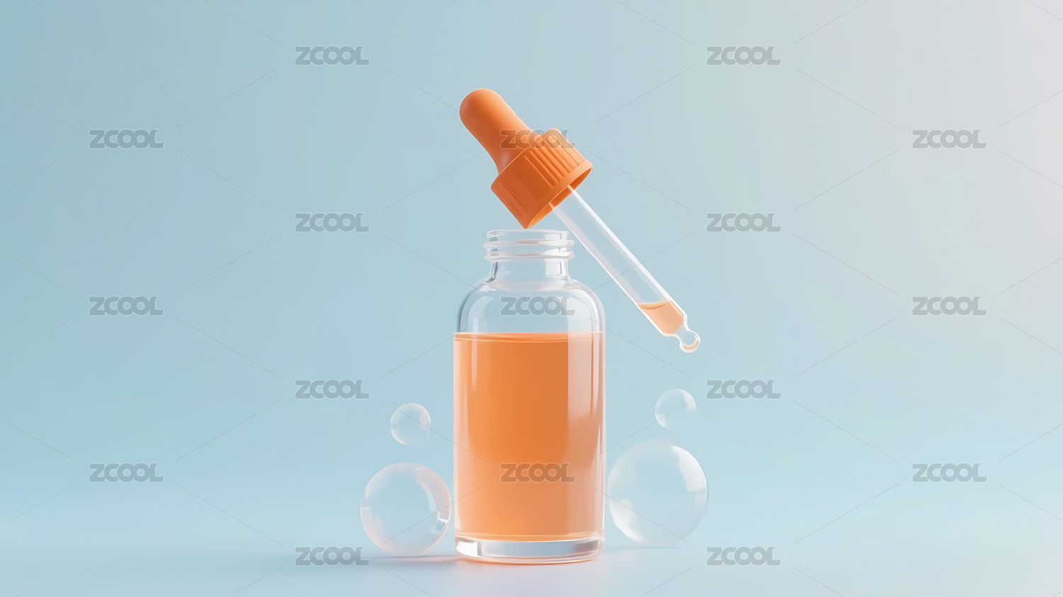 透明护肤品瓶子与滴管三维渲染
