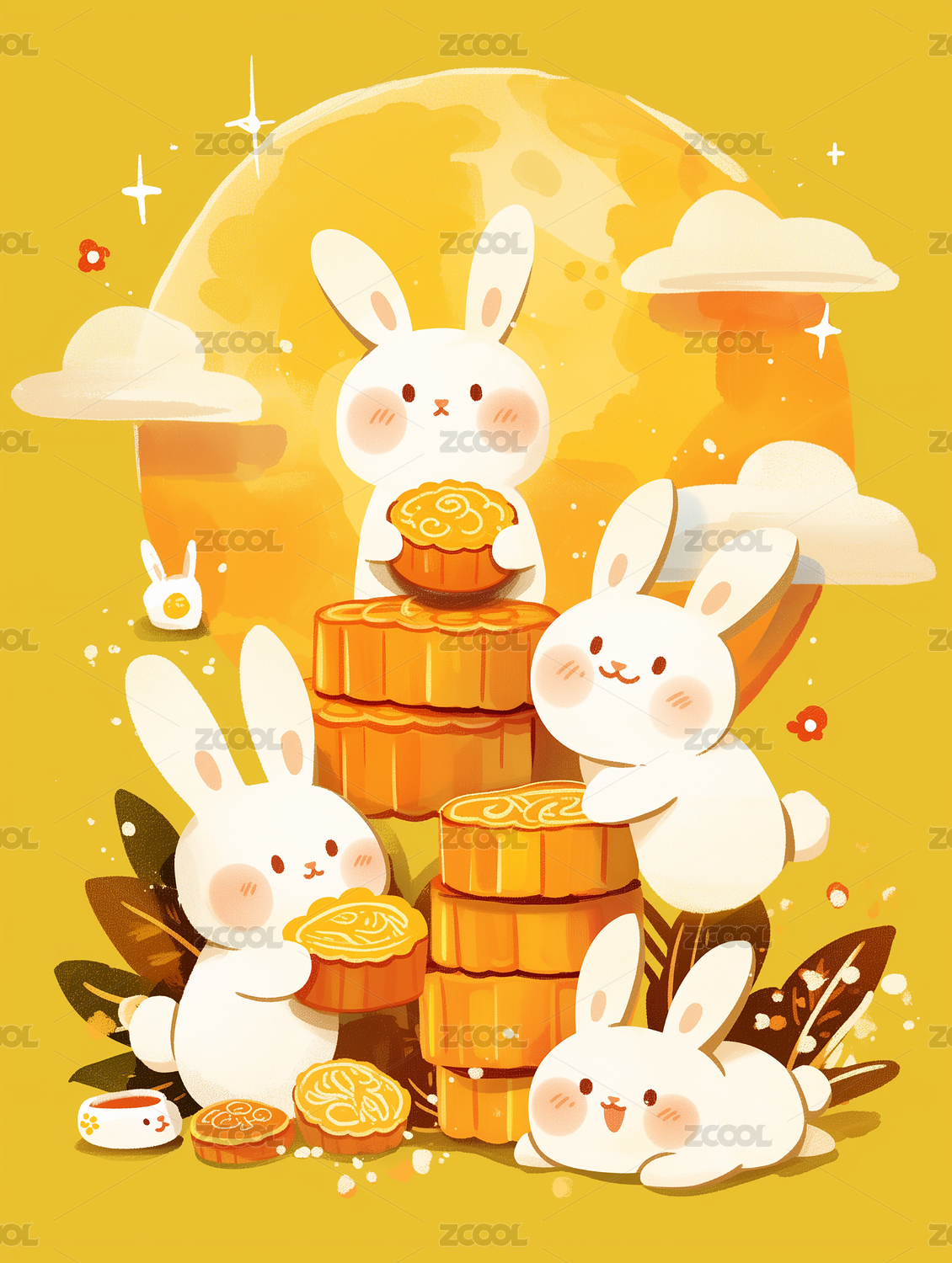 月光下的萌兔与月饼