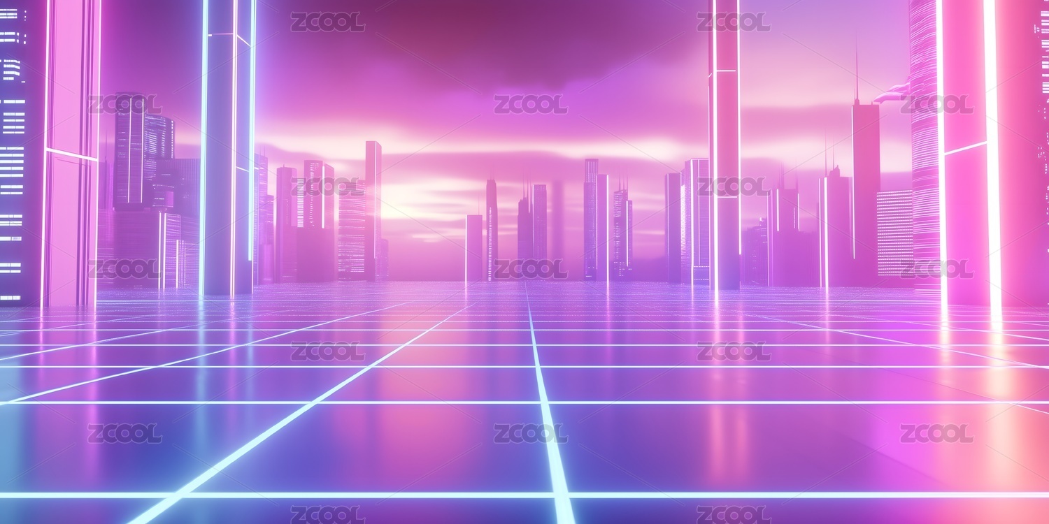 赛博朋克风格城市道路空背景
