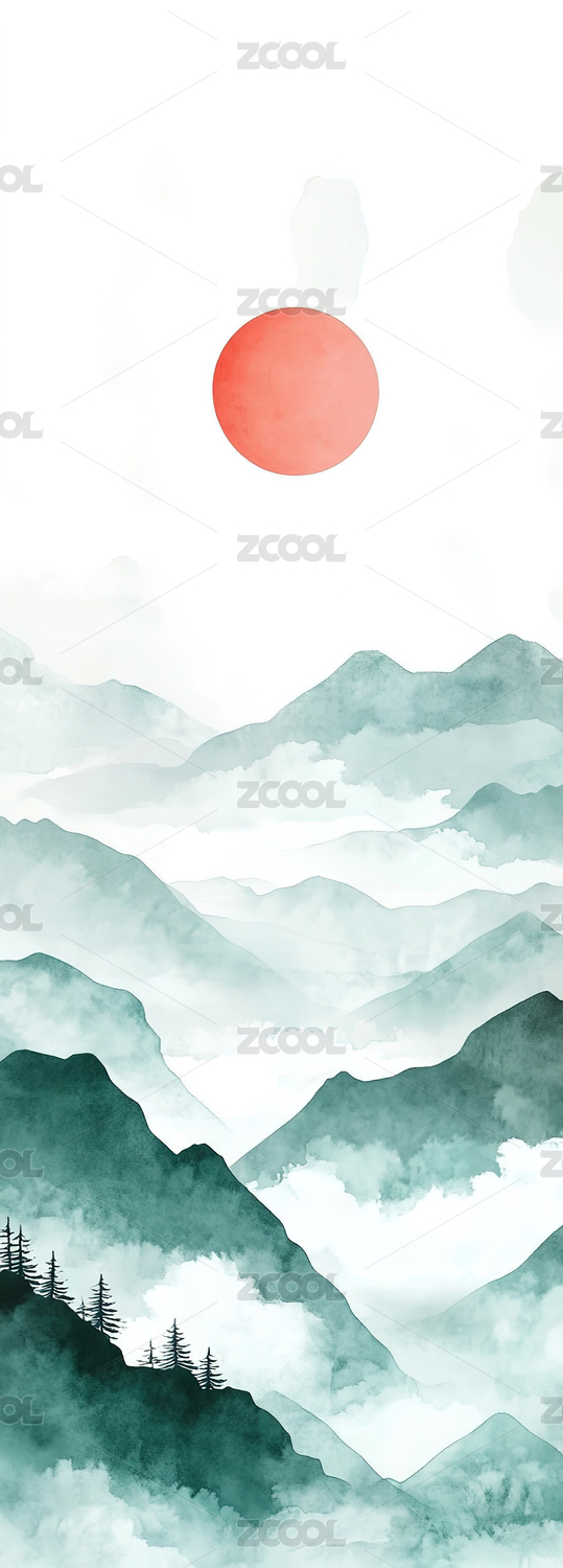 复古,太阳,梦幻,宁静,安静,文化,水,禅意,绘画插图,春天
