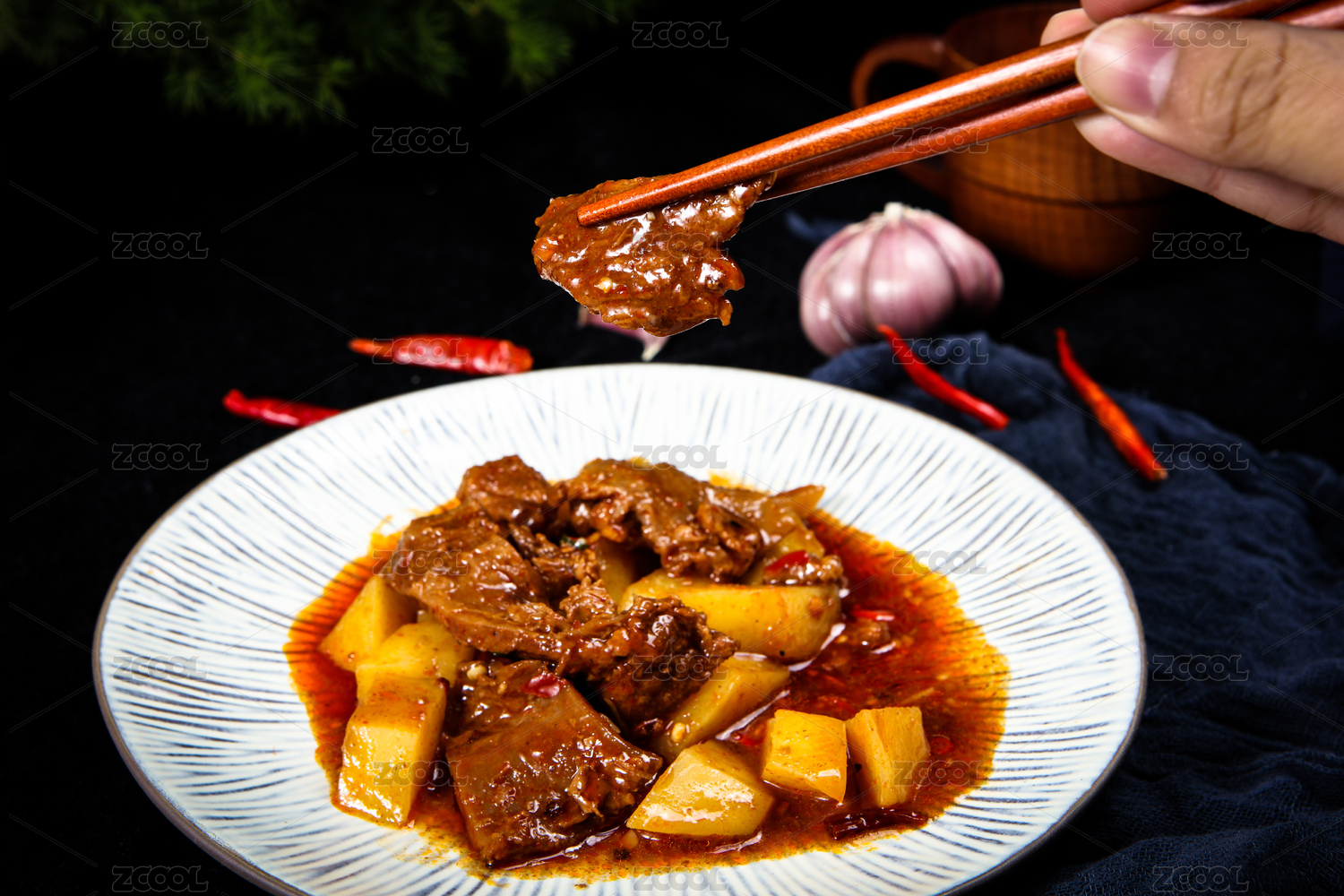 盘子里的红烧牛腩萝卜烧牛腩牛肉