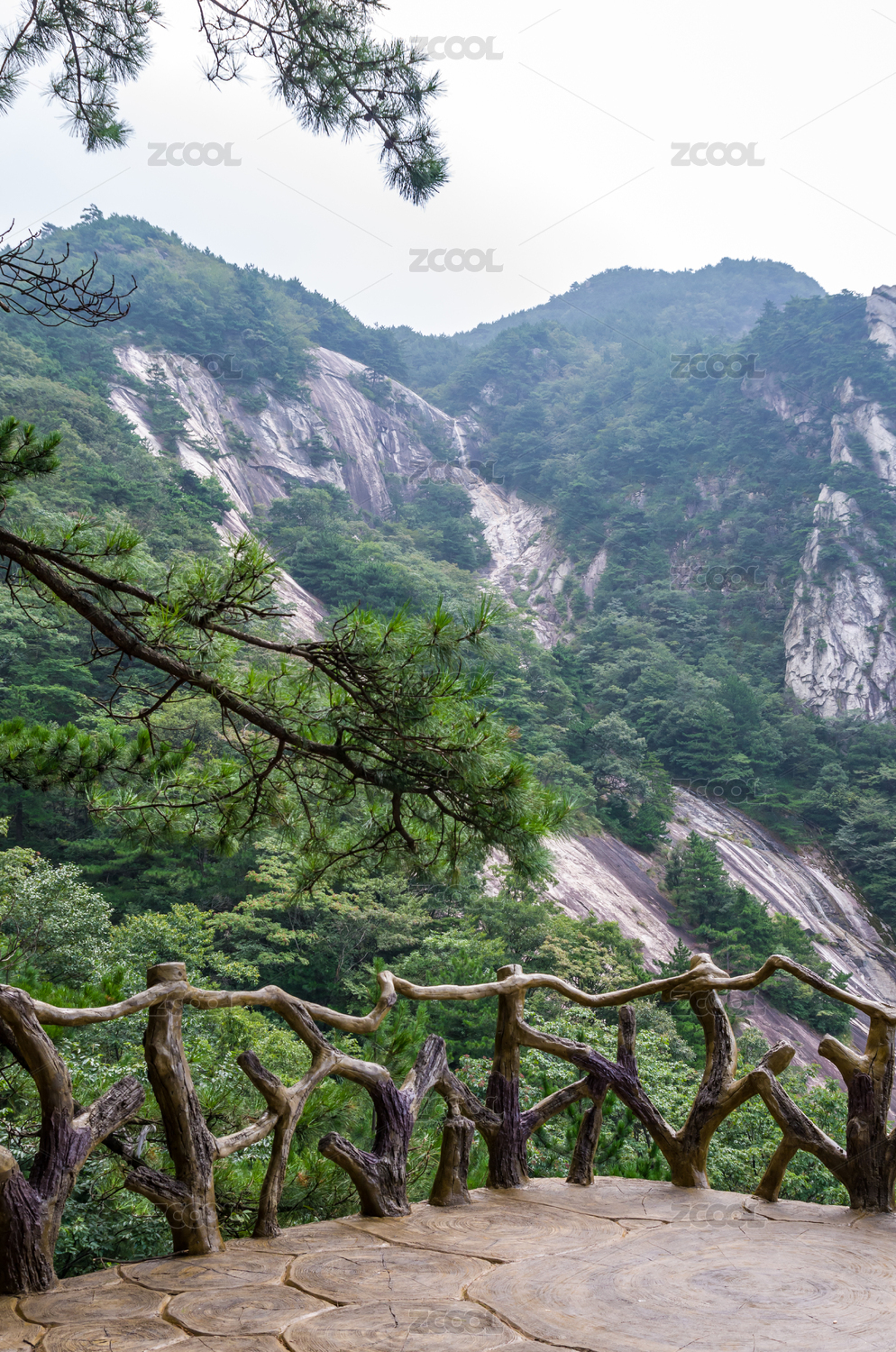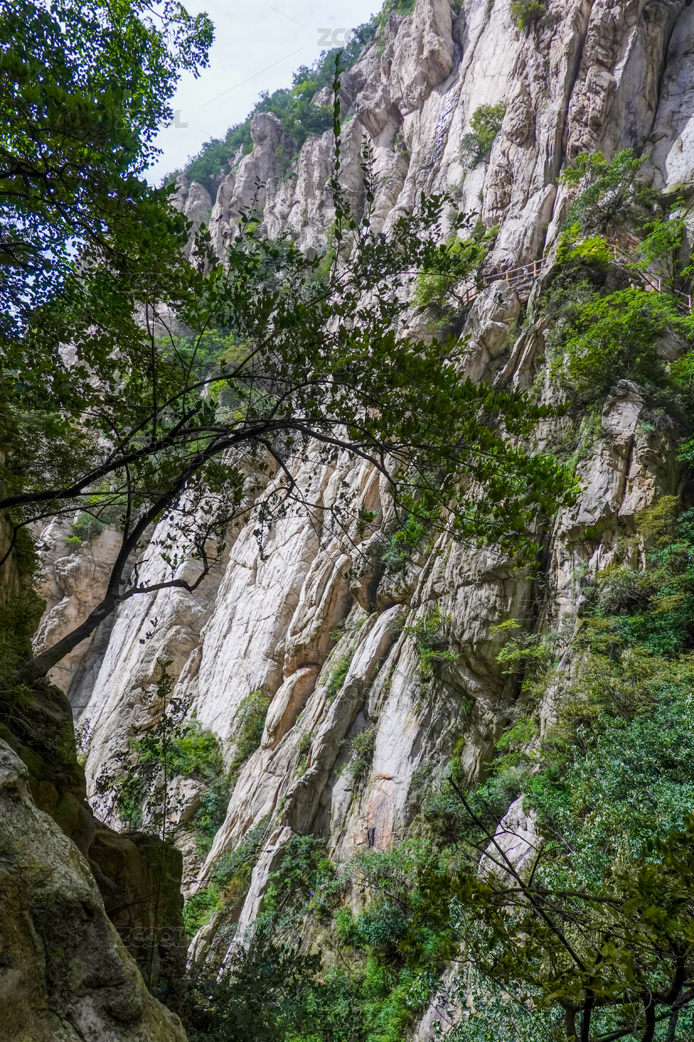 山峰、泰山天烛峰和瀑布竖构图