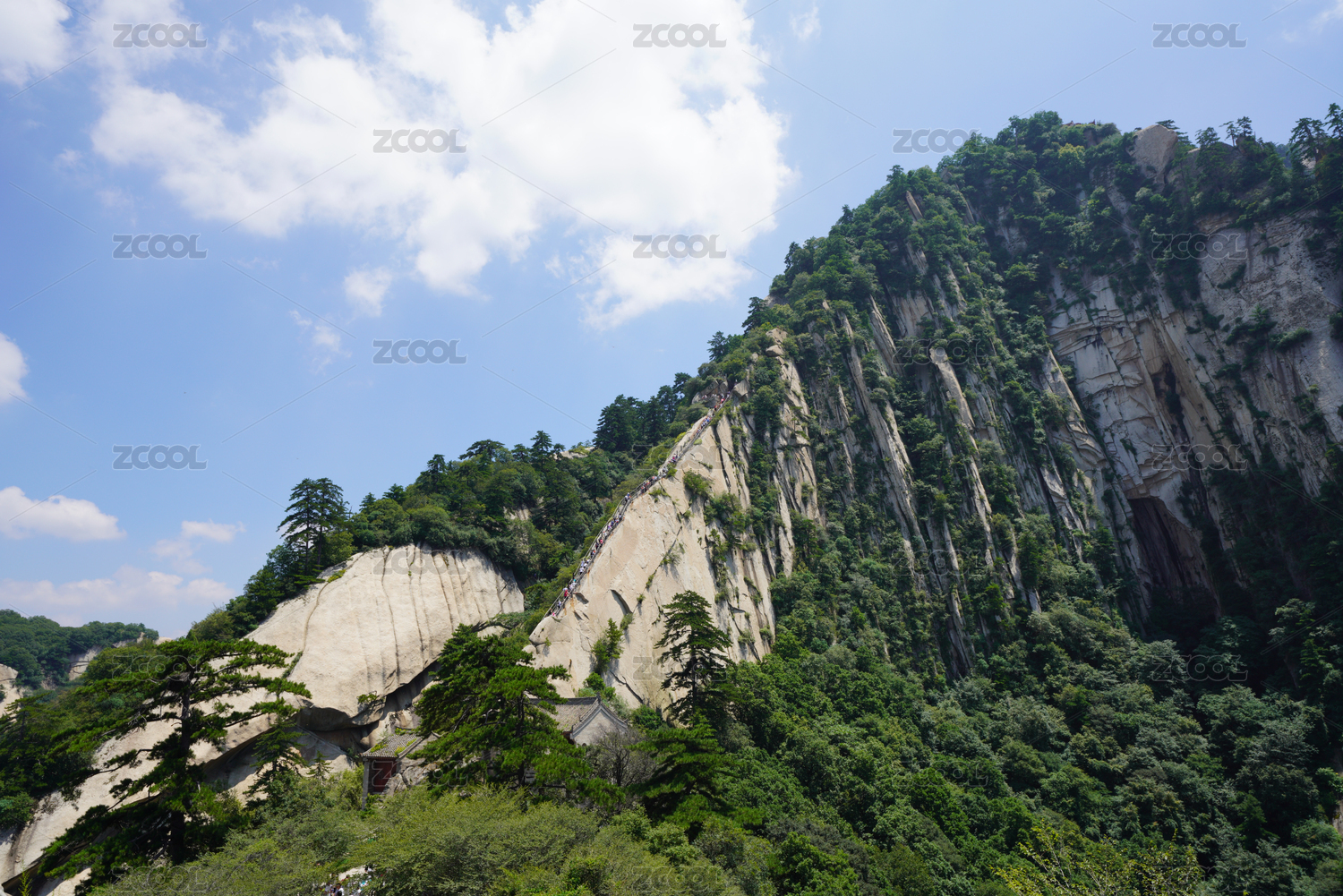 华山高耸陡峭的苍绿色山体