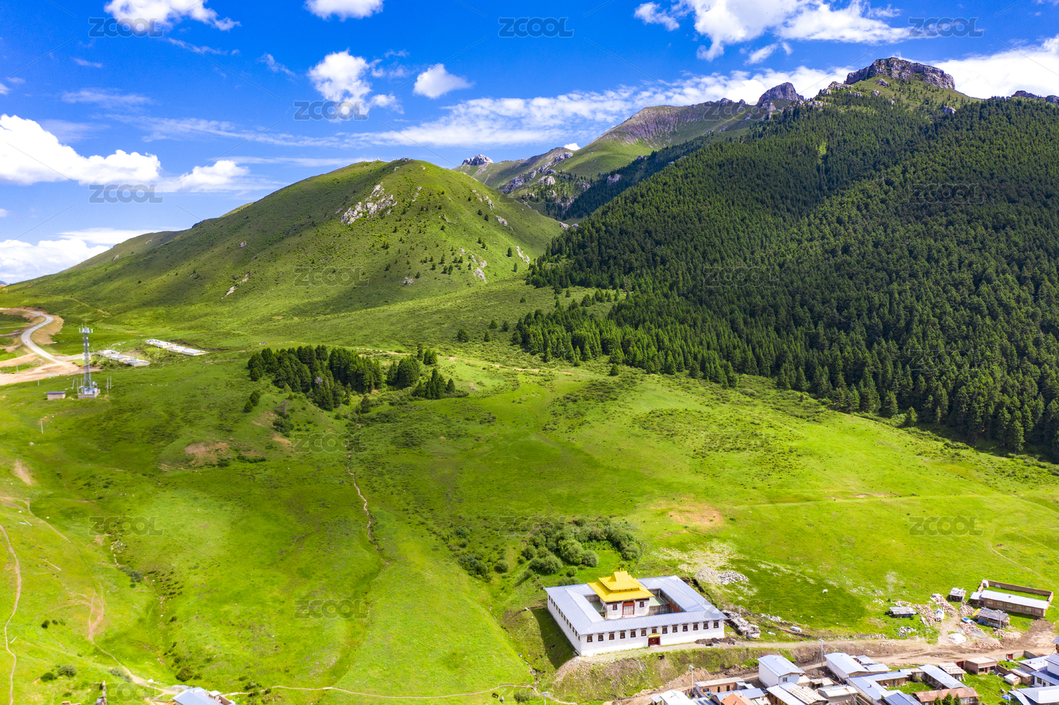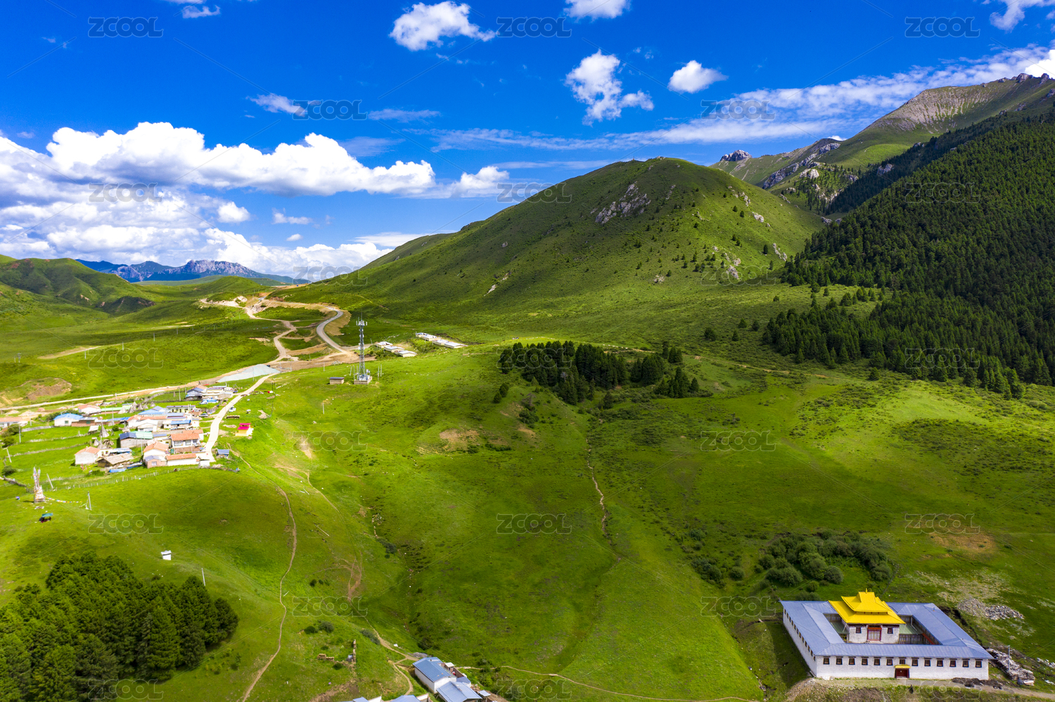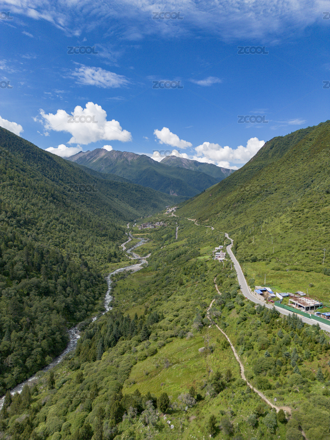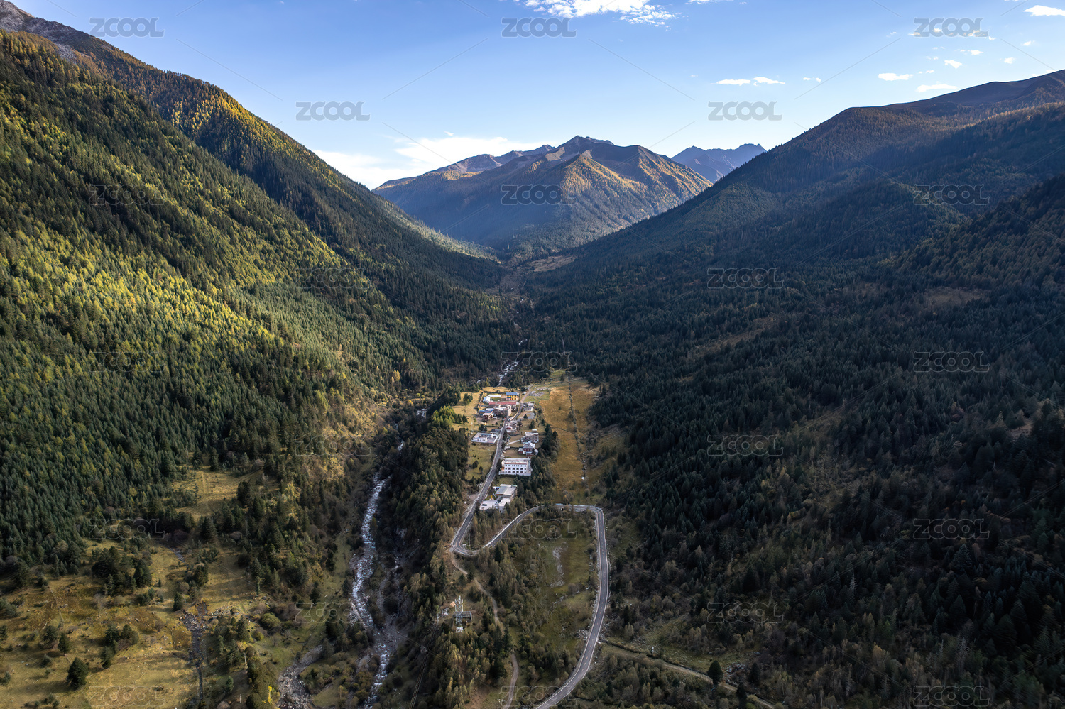四川阿坝州党岭村高原峡谷秋色高空航拍